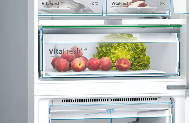 یخچال فریزر بالا پایین بوش 30 فوت مدل KDD86AI304 دارای بهترین سیستم شادابی VitaFresh pro ما هستند. این ماده غذا را تا 3 برابر بیشتر با دمای 1- تا 3 درجه سانتیگراد تازه نگه می دارد و در عین حال سطح رطوبت کامل را حفظ می کند. این ترکیب دما و رطوبت به شما کمک می کند تا از تمام عطرها، مواد مغذی ضروری و ویتامین های ارزشمند موجود در غذای تازه خود محافظت کنید. از این رو، حفظ یک رژیم غذایی سالم با میوه و سبزیجات تازه هر روز آسان تر از همیشه است. منطقه شادابی VitaFresh Plus برای نگهداری انواع غذاها در شرایط ایده آل با تنظیمات دمایی مطلوب (حدود 0 درجه سانتیگراد) طراحی شده است. ماهی ، گوشت و فرآورده های لبنی بهتر است در یک میکرو اقلیم خشک با سطوح رطوبت کم نگهداری شوند. از سوی دیگر ، سبزیجات و میوه ها برای محیطی با رطوبت بالا مناسب تر هستند که از خشک شدن آنها جلوگیری میکند. چیلرهای بوش از سیستم های نوآورانه حفظ تازگی استفاده می کنند که مناسب ترین فناوری تبرید را برای انواع مختلف مواد غذایی ارائه می کند. می توانید مطمئن باشید که سبزیجات شما تا سه برابر بیشتر در منطقه VitaFresh pro تازه می مانند.