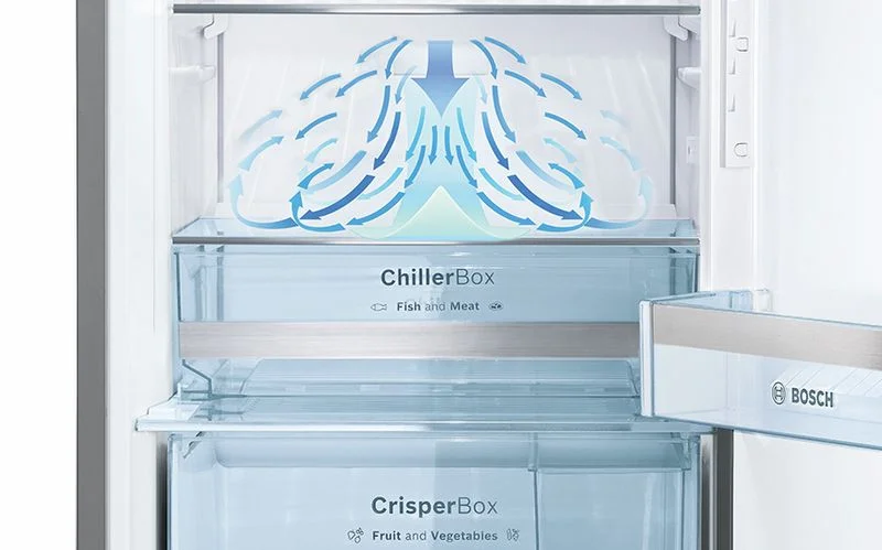 فناوری گردش هوای شتاب دار MultiFlow دمای ثابتی را در تمام بخشهای یخچال فراهم می کند ، به جز کشوی ZeroZone که در آن دما در حدود ۰ درجه سانتی گراد حفظ میشود. هوای خنک از طریق دریچه های دیواره پشتی یخچال و همچنین مستقیماً به کشوی ZeroZone دمیده می شود. در مقایسه با سیستم های معمولی ، MultiFlow کارآمدترین خنک کننده غذا را ارائه می دهد و طراوت ، عطر و مواد مغذی میوه ، سبزیجات و گوشت را برای مدت طولانی تری حفظ می کند. فناوری MultiFlow در یخچال فریزر بالا پایین بوش 30 فوت مدل KDD86AI304 با کشو ZeroZone وجود دارد. Multi Flow در هر سطحی کار می کند - با دریچه های کوچک روی هر قفسه - برای حفظ دمای یکنواخت در سراسر یخچال ، به خصوص پس از باز کردن درب. با خنک کردن هر بخش از هر محفظه به طور همزمان ، به غذاهای شما کمک می کند تا مدت بیشتری تازه تر بمانند.