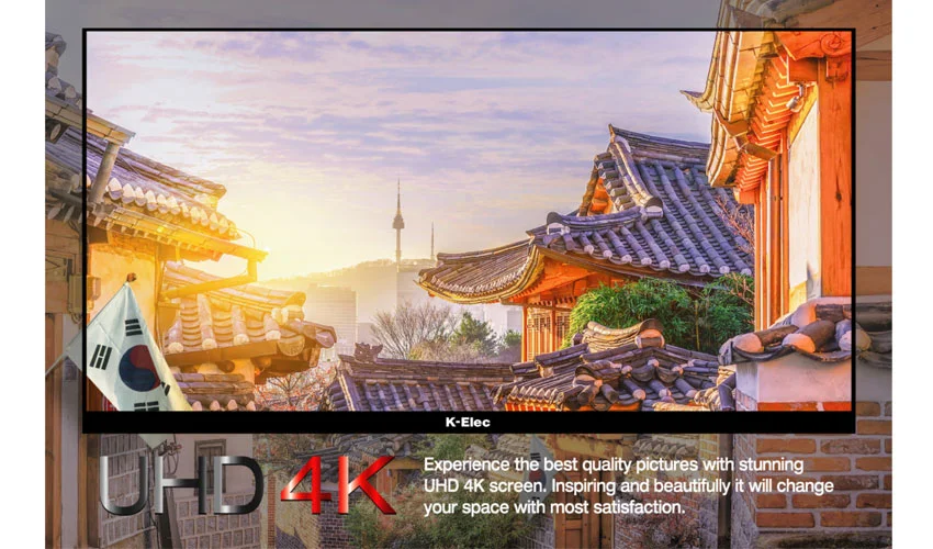 تلویزیون الک 50 اینچ k_Elec کره 4k اسمارت 50UK775V یکی از تلویزیون های خوش طرح کره می باشد که مردم کره از آن بسیار طرفداری کرده اند ؛ این تلویزیون از طراحی خاصی برخوردار است. برند معروف الک برای راضی کردن مشتریان و خریداران خود تلویزیون 50 اینچ k_Elec را وارد عرصه بازار نموده است. همان طور که می دانید اکثر مردم به دنبال خرید تلویزیون و اجناس مرغوب کره ای هستند پس این مدل تلویزیون دارای خواهان زیادی است. این تلویزیون عالی با حاشیه ای باریک با فریم نازک در قاب تعبیه شده است و این نیز به نوبه خود باعث تمرکز کاربر به سمت تصاویر در حال پخش شده خواهد بود و منجر به تمرکز هر چه بیشتر بیننده به تلویزیون خواهد شد. این مدل تلویزیون با سایز 50 اینچ و رنگ مشکی ساخته و وارد بازار جهانی شده است به گونه ای که در همان نگاه اول می تواند دید بسیاری از کاربران را به سمت خود بکشاند و به سهولت با دکوراسیون اتاق نشیمن شما هماهنگی ایجاد می کند. شما می توانید این مدل تلویزیون را بر روی پایه های تعبیه شده بر روی میز ال ای دی خود قرار داده و این پایه ها به خوبی وزن دستگاه را تحمل می کنند. اما نکته جالب اینجاست که شما می توانید این تلویزیون را نیز بر روی دیوار منزل خود نصب کنید و از هر طرف که به آن نگاه کنید زیبایی و جذابیت خود را به رخ کاربران می کشاند. در ضمن می توان گفت که چهار عدد ورودی HDMI و سه عدد USB برای کاربرد ها و اتصالات فراوان دستگاه های دیگر در پشت تلویزیون تعبیه شده است و شما می توانید به راحتی به آنها دسترسی پیدا نمایید.