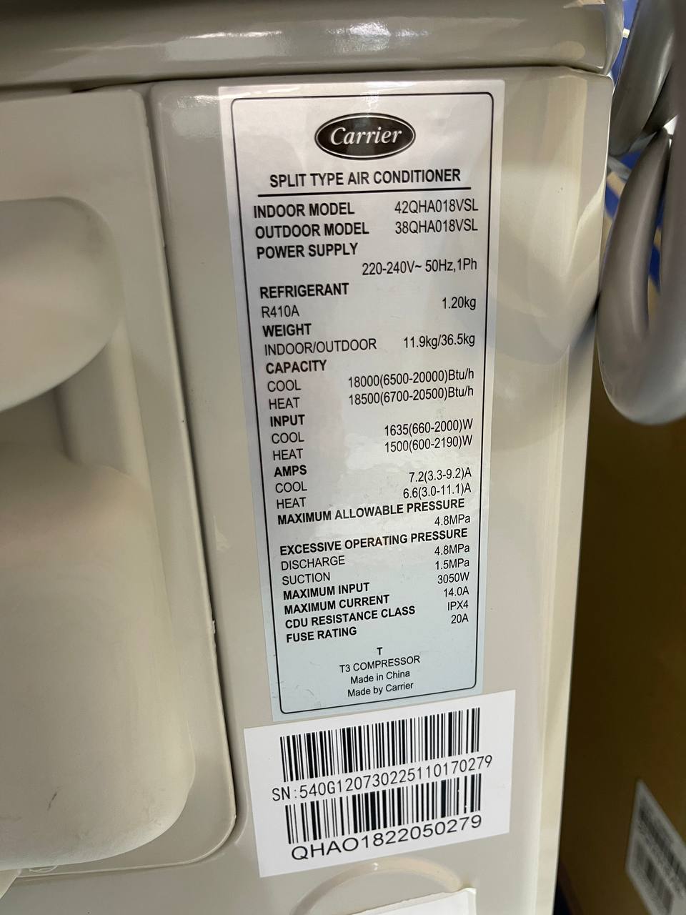 کولر گازی 18000کریر Carrier هوا را تصفیه کرده است و باد را از چهار جهت پخش میکند. دارای فیلتر بهداشتی، موتور قدرتمند و رادیات مسی است. با رنگ سفید بر روی دیوار ظاهر زیبایی به خانه شما میبخشد.