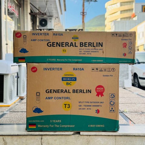 عملکرد و کارایی یک کولر گازی مربوط به کمپرسور استفاده شده در آن میباشد. کمپرسور استفاده شده در این کولر گازی روتاری میباشد که به همراه برد الکترونیکی اختصاصی، از لحاظ کارکرد از پیچیدگی کم تری برخوردار می باشد و توانایی بهره برداری با کارایی بالا را فراهم میسازد. وجود قطعات متحرک کمتر در این دستگاه سبب ایجاد سر و صدایی کمتری می شود. با میزان صدای کمتر از 46 دسیبل، شما در محیطهای خانگی یا تجاری از محیط آرامش بخش اطمینان حاصل می کنید. از مزایای دیگر کمپرسور روتاری قابلیت تعمیر آن به سادگی است که در صورت خرابی تعمیر آن سخت نخواهد بود. جنرال برلین این کولر گازی را از فناوری اینورتر بهرهمند کرده است که یک فناوری پیشرفته جهت تنظیم دمای محیط به صورت بهینه خواهد بود. این امر سبب صرفهجویی در مصرف انرژی و کاهش هزینه های برق خواهد شد. این کولرگازی به صورت دو عملکرده میباشد. یعنی هم سرمایشی و گرمایشی میباشد و در هم در فصل گرم و هم در فصل سرد قابل استفاده است. این میتواند بسیار مقرون به صرفه باشد یعنی نیازی به خرید محصول جداگانه برای سرمایش یا گرمایش نخواهید بود. ظرفیت این کولر گازی 30000 میباشد که تا مساحت 60 الی 75 متر را خنک کند و می تواند برای فضای اداری، مطب ها، مساجد و دیگر محیط ها بسیار مناسب باشد. از آنجایی که جهت جریان باد در این کولر گازی چهار جهته می باشد پس به راحتی هوای خنک در تمام نقاط آن محیط به جریان در خواهد آمد و هوای آن فضا را خنک خواهد کرد. این دستگاه تک فاز و دارای نوع گاز مبرد R410A است که انتخابی مناسب برای محیط های مسکونی و تجاری به حساب می آید. این گاز R410 به دلیل سبک بودن و توانایی پخش سریع در محیط مورد نظر قابلیت این را دارد که دمای محیط را در سریعترین حالت تغییر دهد، غیر قابل اشتغال بودن و کم مصرف بودنش بسیار در بین مردم محبوب می باشد.