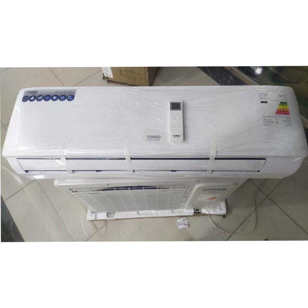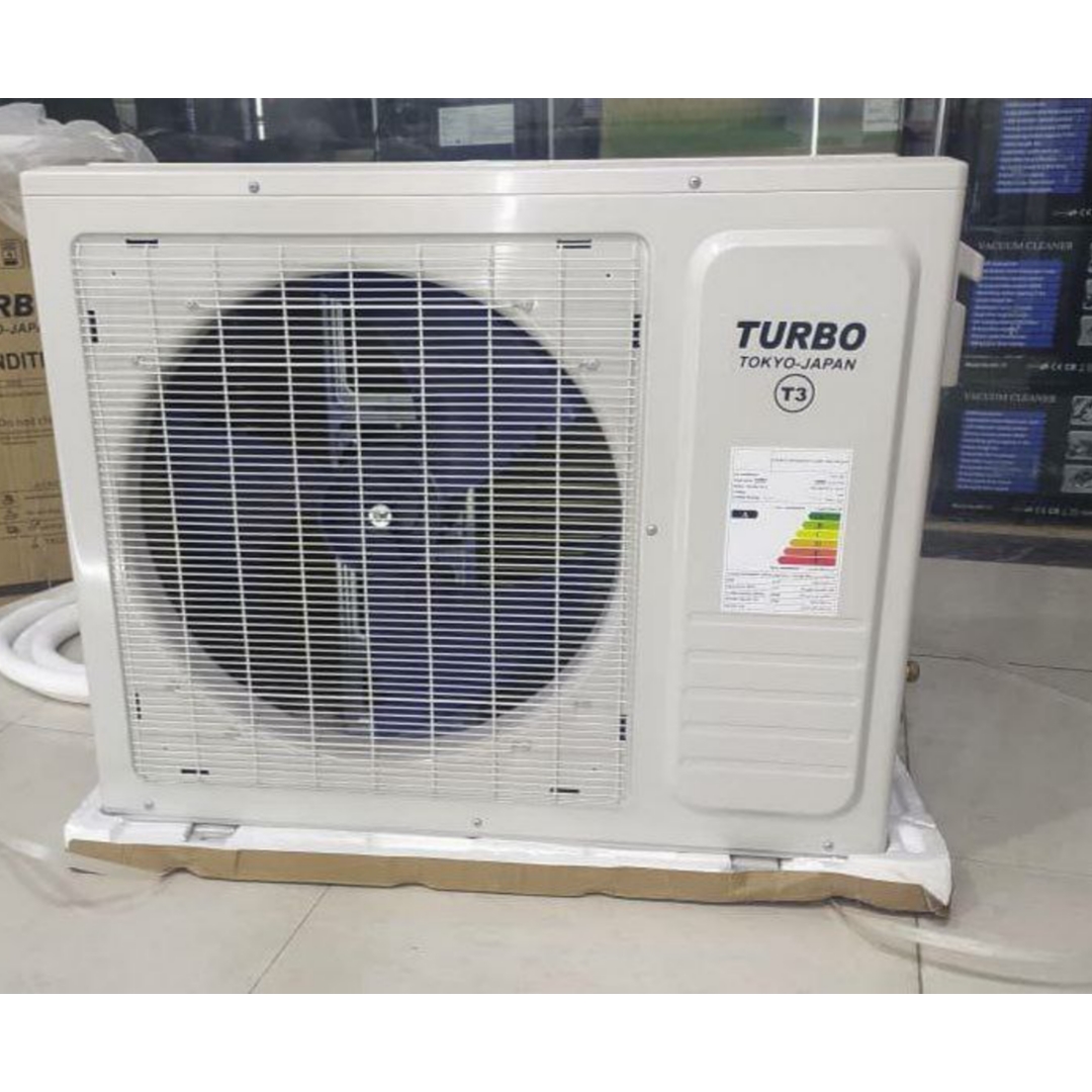 این کولرگازی توربو یک کولرگازی زیبا با طراحی ساده و شیکی می باشد. این کولر گازی جز کولرگازی های دیواری می باشد که بر روی دیوار نصب خواهد شد و همین سبب می شود که فضای بسیار کمی را بگیرد. این کولر گازی توربو ژاپن با رنگ زیبای سفید براقی دیزاین شده است که جلوه ای بسیار زیبا را با خانه خواهد بخشید و مزیتی که دارد با تمامی وسایل خانه هماهنگ خواهد شد. کولرگازی توربو ژاپن دارای بدنه ای از جنس پلاستیک می باشد که بسیار محکم است و در برابر هر خط و خشی مقاوم می باشد. در قسمت وسط کولر گازی شما شاهد یک led مخفی می باشید که در هنگام استفاده از ریموت کنترل می توانید دمای کولر و یا دیگر اطلاعات را مشاهده کنید. همچنین در کنار پنل led این کولر گازی اسم برند TURBO نیز به چشم می خورد. این کولرگازی دارای دو یونیت می باشد. یونیتی که بر روی دیوار نصب می شود پنل داخلی و پنلی که در بیرون قرار گرفته می شود پنل خارجی کولرگازی محسوب می شود. پنل بیرونی این کولر گازی از استحکام زیادی برخوردار می باشد و در برابر باد، باران، نور خورشید نیز مقاوم است. این دو یونیت از طریق یک لوله مسی 5 متری به همدیگر متصل خواهند شد. این کولر گازی به همراه یک ریموت کنترل عرضه شده است که میتوانید کولر گازی را از راه دور تنظیم کنید.