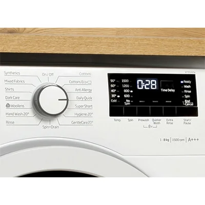 صفحه نمایش دیجیتالی شیک با نشان دادن زمان باقی مانده تا پایان شستشو و همچنین تاخیر زمانی شما را مطلع می کند. علاوه بر این ، دکمه الکترونیکی با چراغ های نشانگر برای هر برنامه ، برنامه نویسی را بسیار راحت تر می کند. کاهش خودکار سطح آب برای بارهای کم یا زیاد بسیار کارآمد است که صرفه جویی در آب هم محسوب می شود. این دستگاه Beko به طور خودکار سطح آب را برای نصف یا بارهای کوچک کاهش می دهد و در هزینه های آب و برق صرفه جویی می کنید.
