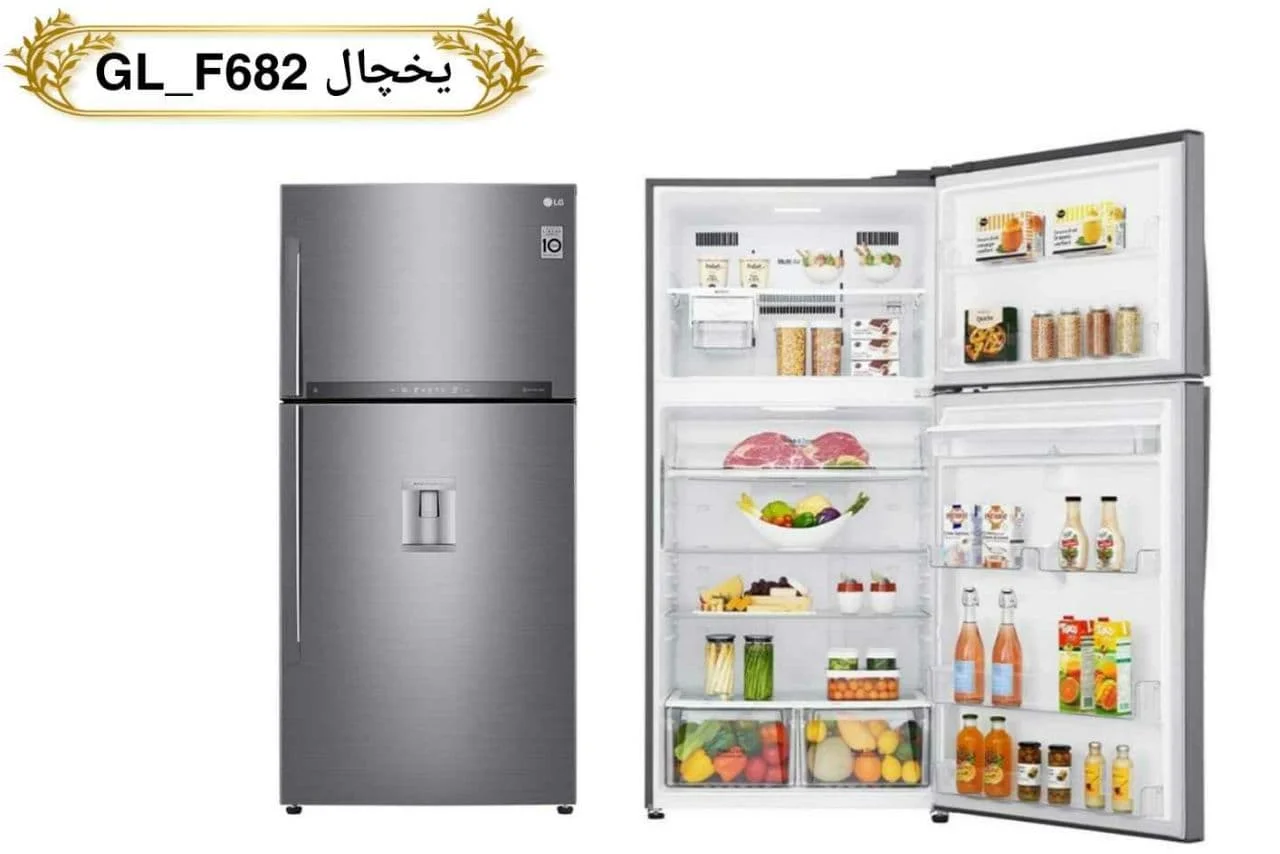 یخچال F682 نیز یک یخچال بالا پایین می باشد که قسمت بالایی متعلق به فریزر و پایینی متعلق به یخچال می باشد. کیفیت این یخچال F682 بسیار خوب می باشد و دارای بدنه مستحکمی می باشد. بر روی بدنه این یخچال یک پنل لمسی نیز وجود دارد که از طریق آن می توانید تنظیمات مربوط به یخچال را انجام دهید. ال جی این یخچال را در دو رنگ سفید و نقره ای عرضه بازار کرده است. ظرفیت این یخچال 490 لیتر می باشد. و می تواند برای خانواده های کم جمعیت رو به متوسط گزینه مناسبی باشد. موتور استفاده شده در این یخچال بالا پایین از نوع اینورتر خطی می باشد. در واقع می توان گفت که یکی از بهترین موتور های موجود در بازار می باشد که ال جی در این یخچال های بالا پایین از آن ها استفاده کرده است. فیلتر بهداشتی Hygiene Fresh در این یخچال نیز به چشم می خورد. در واقع این فیلتر باعث می شود که تمامی میکروب و باکتری های سطح مواد غذایی از بین برود. این یخچال دارای کشو میوه و سبزی و FRESH ZONE می باشد که با استفاده از آن مواد غذایی سالم تر خواهند ماند. این یخچال F682 دارای 4 طبقه، 2 کشو و 3 طبقه در درب آن می باشد. در قسمت فریزر دارای 2 طبقه و 2 کشو می باشد. این یخچال بدون برفک می باشد و از یخ زدگی مواد غذایی جلوگیری خواهد کرد. همچنینی این یخچال دارای قفل کودک، آبریز و لامپ LED می باشد که فضای داخل یخچال را به خوبی روشن خواهد کرد.