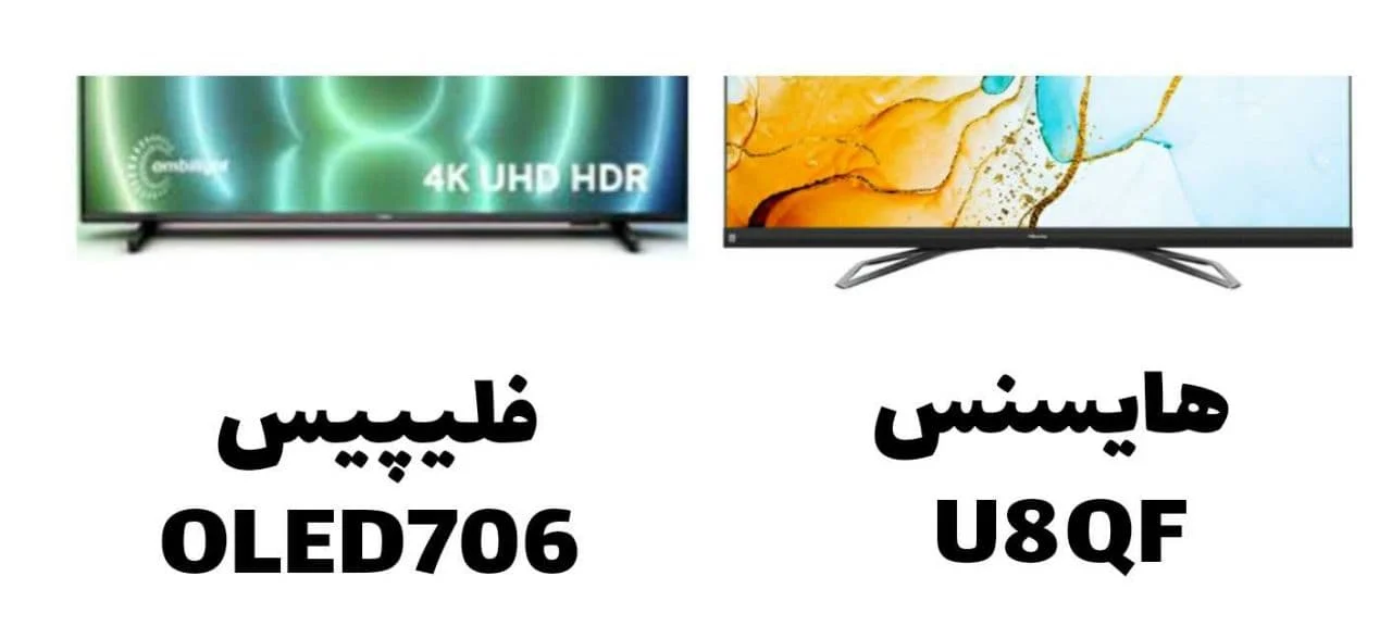 تلویزیون ها از مهم ترین وسایل در هر خانه و مکانی می باشند که امروزه همه برند ها در تلاش هستند تا تلویزیون هایی با کیفیت عالی و دیزاین زیبا عرضه بازار کنند. از برند هایی که از محبوبیت زیادی برخوردار می باشند به نحوی در بین مردم بسیار مشهورند می توان به برند فیلیپس و هایسنس اشاره کنیم. اینبار قصد داریم تلویزیون فیلیپس مدل OLED706 و تلویزیون هایسنس مدل U8QF را با هم دیگر مقایسه کنیم. تلویزیون فیلیپس محصول سال 2021 و تلویزیون هایسنس محصول سال 2020 می باشد. در ادامه با ما همراه باشید اگر قصد خرید آن ها را دارید بتوانید انتخابی مناسب میان آن ها داشته باشد.