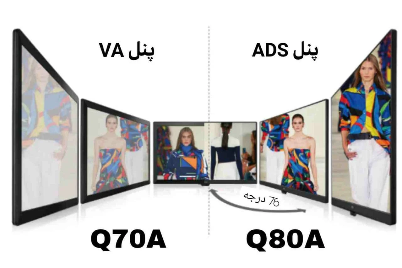می توان گفت که زاویه دید در این تلویزیون ها متفاوت می باشد و این بستگی به پنل های استفاده شده در آن ها دارد. تلویزیون Q80A دارای پنل ADS می باشد که عملکردی مشابه با پنل IPS دارد. اما تلویزیون Q70A دارای پنل VA می باشد. در رابطه با زاویه دید آنها باید بگوییم که تلویزیون Q80A دارای زاویه دید گسترده تری به نسبت Q70A می باشد. زاویه دید در تلویزیون Q70A برابر با 66 درجه می باشد و در تلویزیون Q80A زاویه دید برابر با 76 درجه می باشد.