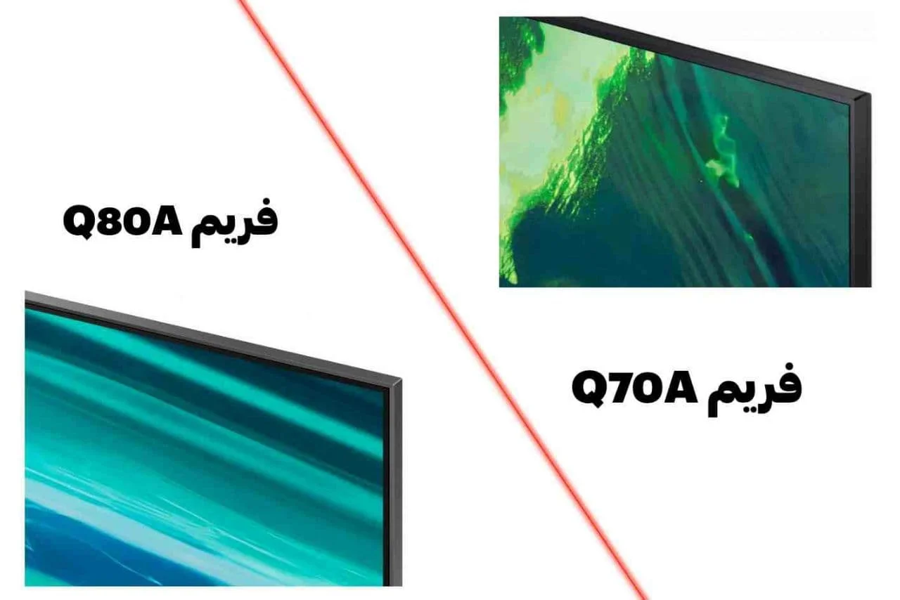 با نگاه کردن به فریم این دو مدل تلویزیون به این نتیجه میرسیم که بسیار به هم شباهت دارند و تفاوت آنچنانی دیده نمی شود. فریم تلویزیون Q80A برابر با 0.9 سانتی متر می باشد و فریم تلویزیون Q70A سامسونگ دارای ضخامت 1.2 سانتی متر می باشد. در کل می توان گفت که فریم های هر دو مدل تلویزیون فوق العاده باریک می باشند اما می توانید به راحتی متوجه شویئد که تلویزیون Q80A دارای ظرافت بیشتری می باشد و از فریم باریک تری برخوردار می باشد. با نگاه کردن به قسمت پشتی تلویزیون ها متوجه می شوید که پورت ها در قسمت پشتی تعبیه شده اند و از این لحاظ هم تفاوت چندانی ندارند. همچنین رنگ هر دو مدل تلویزیون مشکی می باشد.