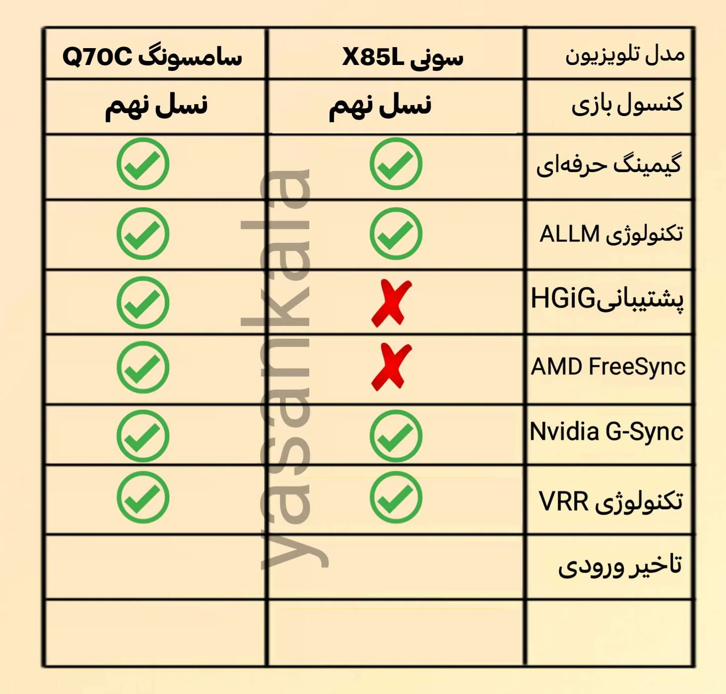 تلویزیون هایی که در بالا معرفی کردیم جز تلویزیون های میان رده سونی و سامسونگ می باشند که محصول سال 2023 و مناسب گیمینگ حرفه ای می باشند. اصلی ترین تفاوت آنها مربوط به ظاهر و دیزاین، صفحه نمایش، نور پس زمینه،پردازنده، سیستم عامل و حافظه اشاره کرد که تا حدودی سبب برتری تلویزیون X85L سونی بر Q70C سامسونگ شده است. اما در حالت کلی هر دو فوق العاده هستند و در نهایت بودجه و سلیقه شما تصمیم گیرنده خواهند بود.