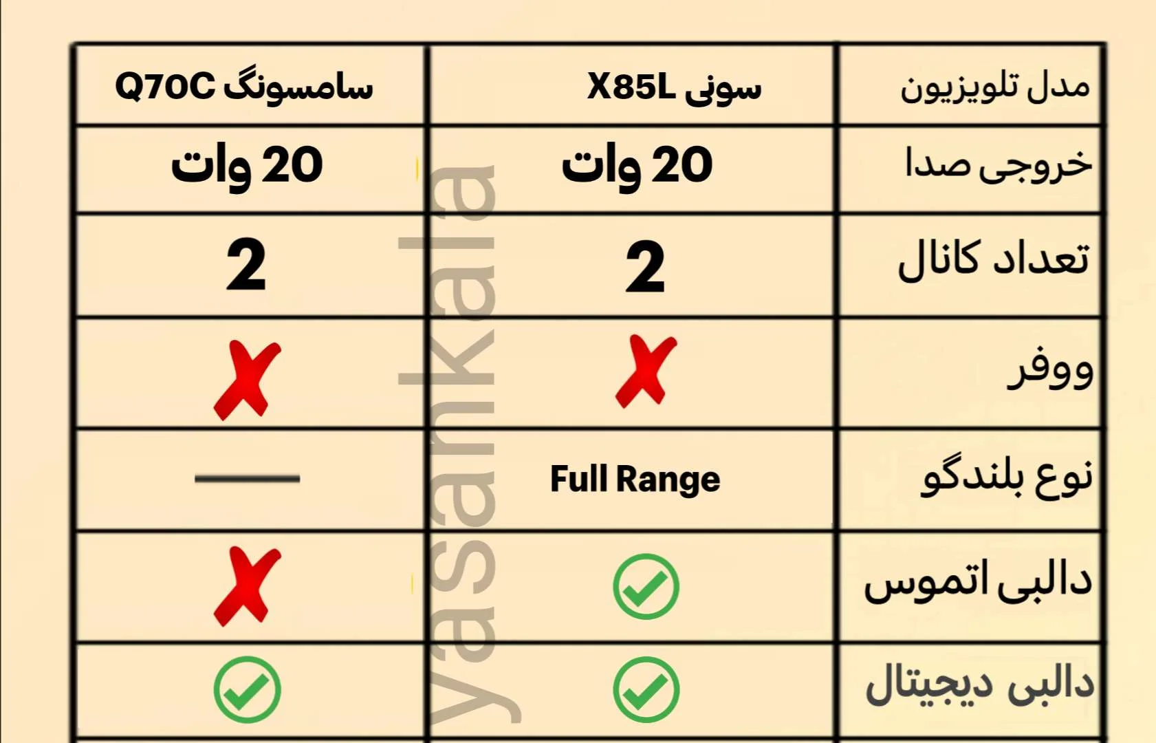 دالبی دیجیتال در هر دو تلویزیون سونی X85L و Q70C سامسونگ می باشند.