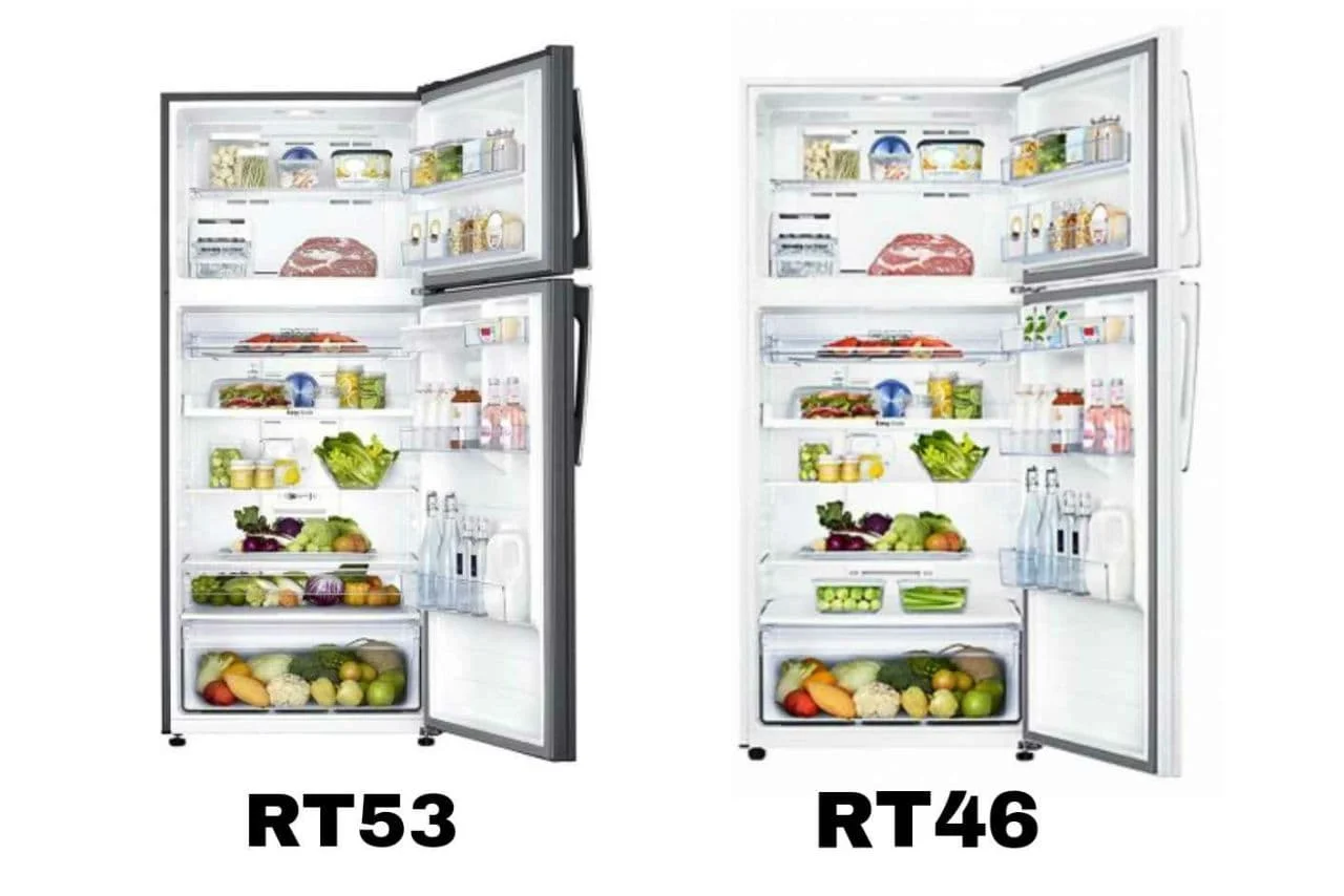این دو مدل یخچال دارای ظرفیت های متفاوت و فضای داخلی متفاوتی می باشند. یخچال RT53 دارای 3 طبقه، 2 کشو و 3 طبقه در درب آن می باشد در وقابل یخچال RT46 دارای 4 طبقه 2 کشو و 5 طبقه در درب آن می باشد. در داخل فریز هر دو مدل یخچال، جعبه یخ وجود دارد که یخ ها به صورت دستی قابل انجام می باشد. همچنین نحوه یخ ها به صورت حبه ای می باشد. هر دو مدل یخچال دارای قفسه ای به نام Big Box می باشند که مخصوص میوه و سبزیجات می باشد و فضای بسیار بزرگی را نیز به میوه و سبزیجات اختصاص می دهد. همچنین در درب هر دو مدل یخچال قفسه ای به نام Big Guards وجود دارد که از طریق آن می توانید بطری های بلند را داخل آن ها جاسازی کنید.