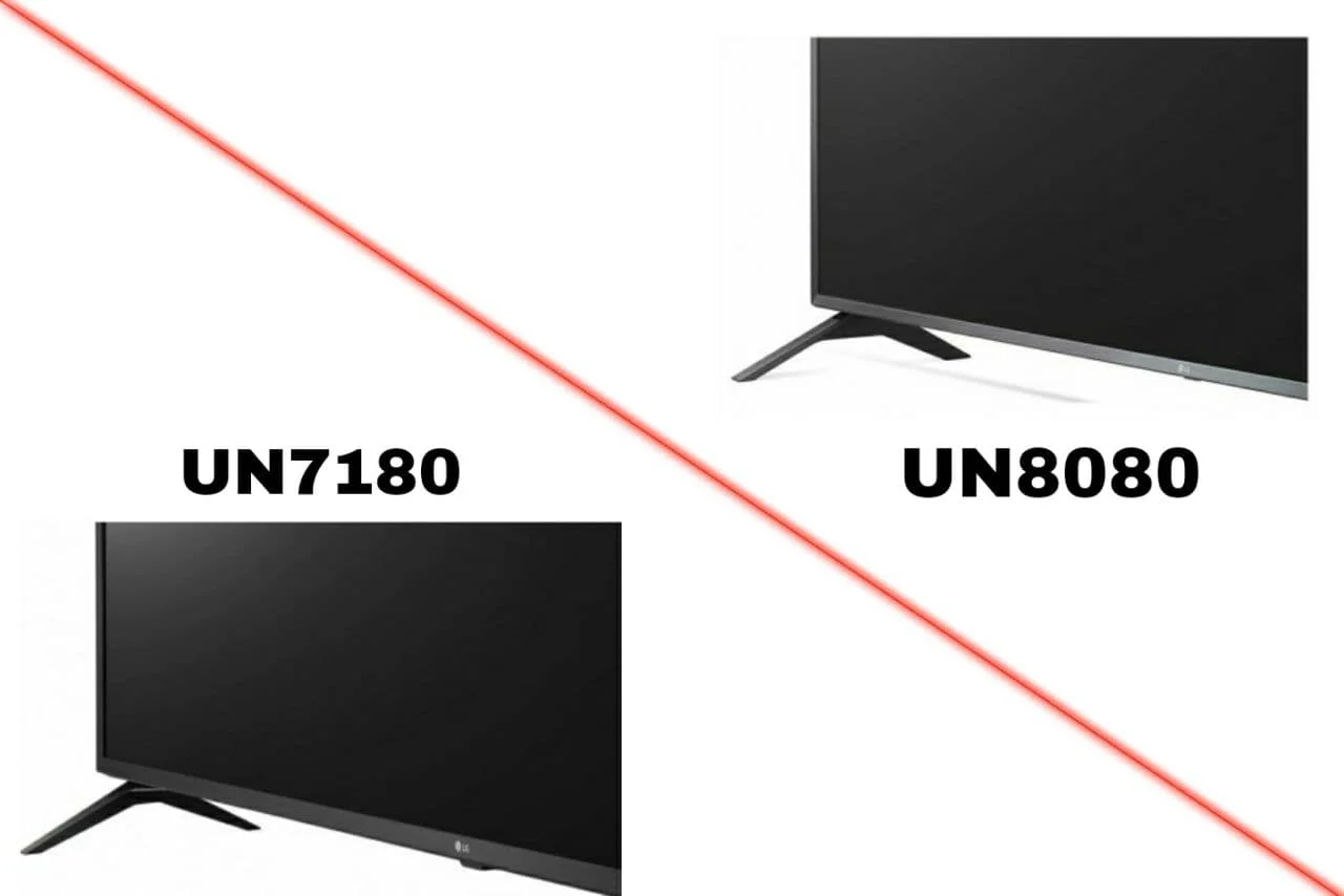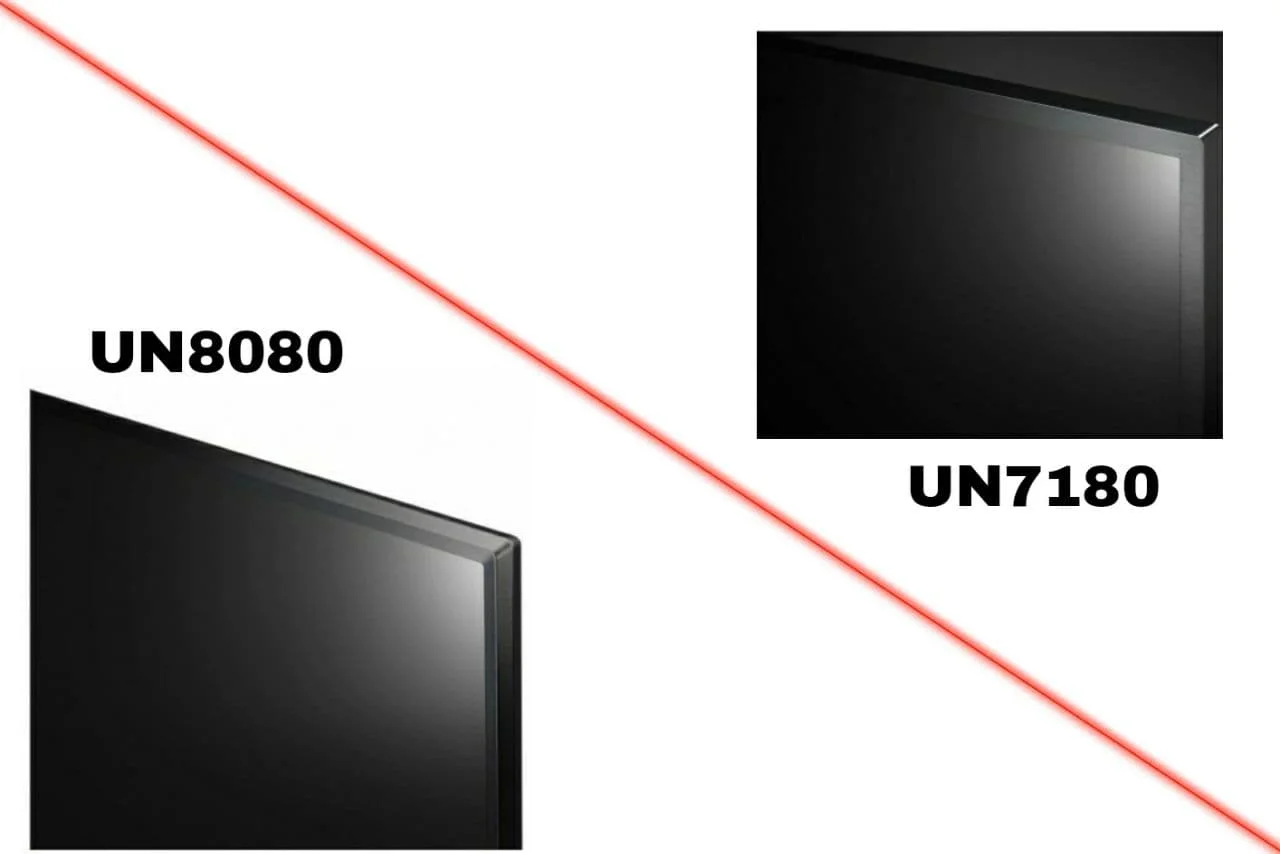 با نگاه کلی به صفحه نمایش این تلویزیون ها متوجه خواهید شد که شباهت بسیار زیادی به همدیگر دارند. قاب هر دو مدل تلویزیون ها فوق العاده باریک می باشد اما فریم تلویزیون UN8080 به نسبت تلویزیون UN7180 باریک تر می باشد و جلوه ای شیک را به این تلویزیون بخشیده است همچنین فریم این دو مدل تلویزیون به رنگ مشکی می باشد. ال جی هر دو مدل تلویزیون ها را به صورت تخت طراحی کرده است. پس باید بگوییم کهه این دو مدل تلویزیون از نظر صفحه نمایش تفاوت چندانی ندارند.