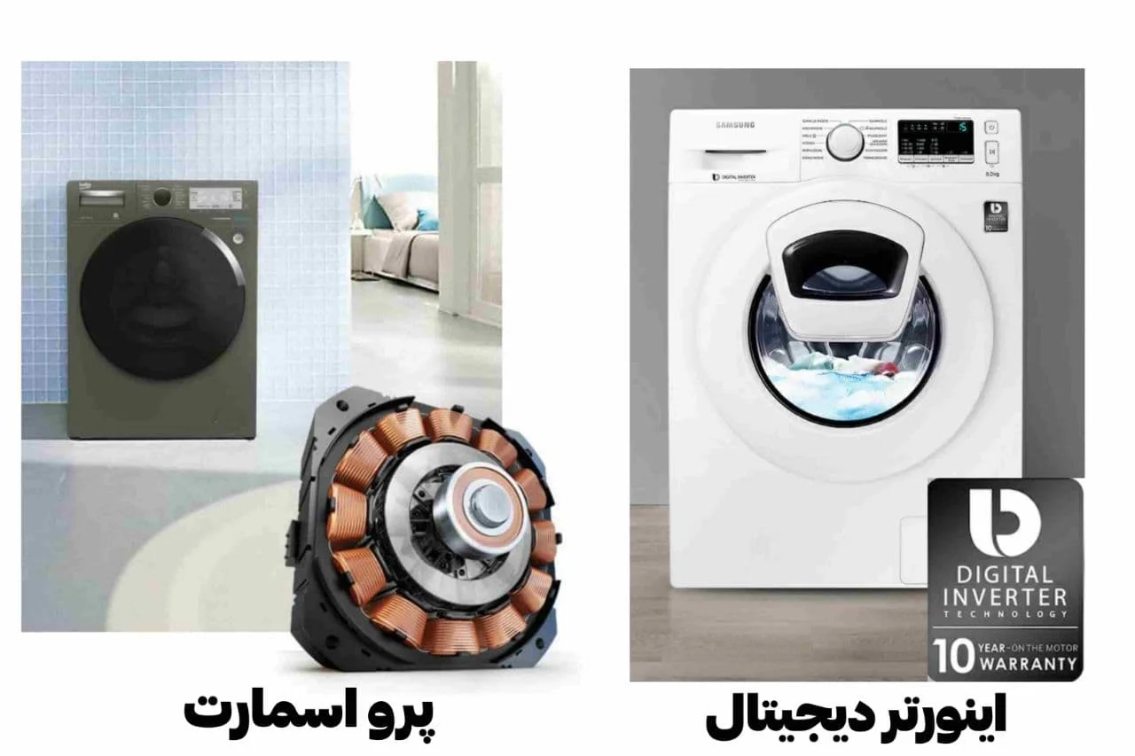 مهم ترین تفاوت این دو مدل لباسشویی در موتور های آن ها می باشد. لباسشویی سامسونگ دارای موتور اینورتر دیجیتالی Digital Inverter می باشد و در مقابل لباسشویی بکو دارای موتور اینورتر Pro Smart می باشد. هر دو مدل از این موتور ها فوق العاده با کیفیت می باشند. موتور اینورتر دیجیتالی سامسونگ بسیار کم صدا، کم مصرف و دارای طول عمر زیادی می باشد که سامسونگ آن را تا 10 سال گارانتی می کند و در مقابل موتور اینورتر پرو اسمارت نیز طبق گفته های بکو بسیار کم سر و صدا و کم مصرف می باشد و نیز دارای 10 سال گارانتی است. سرعت چرخش این موتورئها 1400 دور در دقیقه می باشد که سبب می شود تا چرخه شسشتو لباس ها در مدت زمان بسیار کمی به اتمام برسد. از دلایل کم صدا بودن این لباسشویی ها می توانیم به نبود تسمه در موتور آن ها اشاره کنیم. رده مصرف انرژی در این دو مدل لباسشویی برابر با ++A می باشد که به معنای مصرف انرژی فوق العاده کمی می باشد. در واقع می توان گفت کیفیت موتور هر دو بسیار خوب می باشد و نمی توان ایرادی گرفت اما با این حال موتور اینورتر دیجیتالی محبوب تر می باشد.