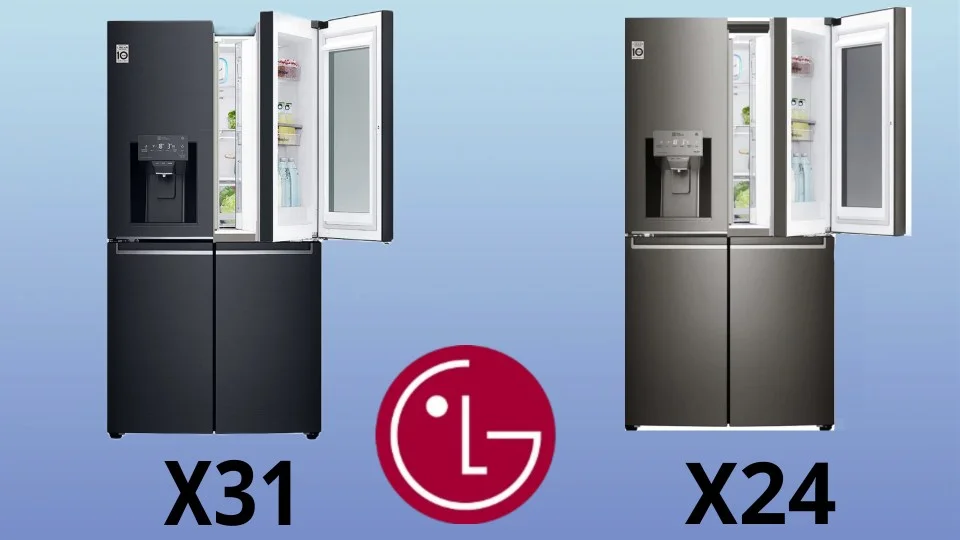 یخچالهای ال جی در حالت کلی همواره دارای طراحی بسیار زیبا و لوکسی میباشند و نقش پررنگی در ایجاد آشپزخانه شیک دارند. با نگاه کردن به این یخچالها متوجه تفاوت آنچنانی نخواهید شد زیرا بسیار مشابه به همدیگر عرضه بازار شدند اول از هر چیزی در مورد شباهت این یخچالها باید عنوان کرد که هر دو یخچال دارای طراحی door in door و اینستا ویو می باشند. همچون دارای ۵ درب میباشند که سه درب بالا مربوط به یخچال و دو درب پایینی مخصوص فریزر میباشند که در جهت چپ و راست باز و بسته خواهند شد.بر روی درب قسمت چپ هر دو یخچال محفظه آبریز تعبیه شده است که بر روی آن یک پنل ال ای دی لمسی قرار گرفته است به کمک آن میتوانید تنظیمات یخچال مربوط به دما رد نمایید. همچنین دستگیره های یخچال از نوع توکار می باشند که ظاهر فوق العاده خاصی را در یخچالها ایجاد کردهاند. بدنه هر دو یخچال از استیل ضد زنگ میباشد که فوق العاده استحکام بالایی دارد و در برابر خط و خراش و ضربه نیز مقاوم است. از تفاوت اصلی این یخچالها در قسمت ظاهری فقط میتوان به عمق یخچال اشاره کرد که یخچال ال جی X31 دارای عمق بیشتری به نسبت یخچال ال جی X24 میباشد. تفاوت دیگری در قسمت ظاهر یخچال دیده نمیشود