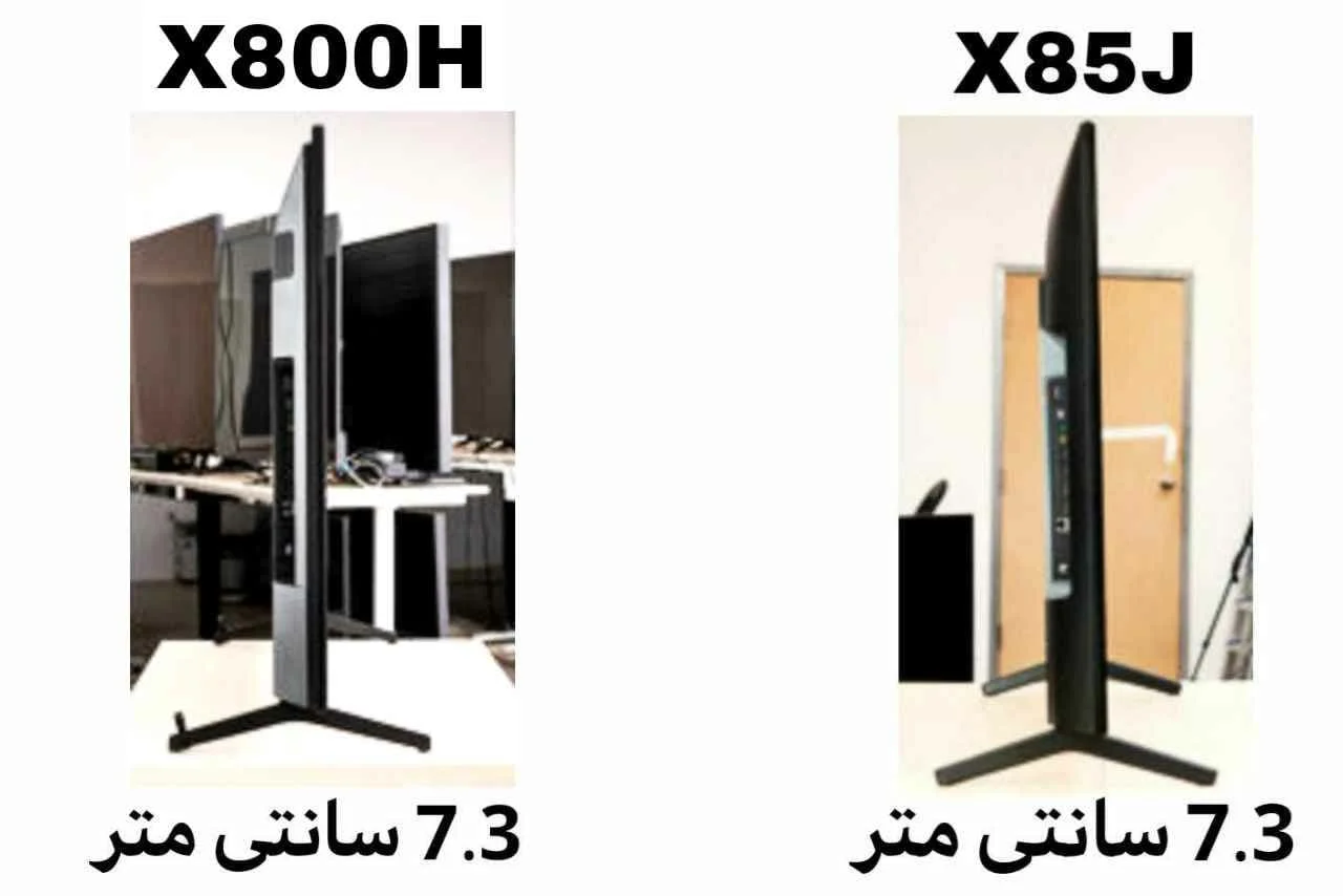 سونی ضخامت بدنه هر دو مدل تلویزیون را یکسان طراحی کرده است. در واقع تلویزیون X85J دارای بدنه ای با ضخامت 7.3 سانتی متر است و تلویزیون X800H نیز به همین شیوه دارای ضخامت 7.3 سانتی متر می باشد. می توان گفت که این تلویزیون ها باریک و ظریف نمی باشند و نصب آن ها روی دیوار زیبا به نظر نمی رسد.