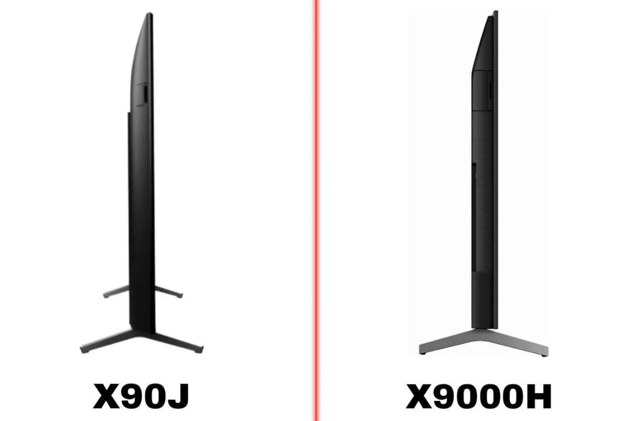 این تلویزیون های مدل X90J و X9000Hجز تلویزیون های باریک و ظریف محسوب نمی شوند زیرا تا حدودی بدنه آنها ضخیم می باشد. ضخامت بدنه تلویزیون X9000H برابر با 7.1 سانتی متر می باشد در حالی که بدنه تلویزیون X90J دارای ضخامت 7.2 سانتی متر است. ضخامت بدنه این دو مدل تلویزیون بسیار به هم شبیه می باشد و تفاوت چندانی در اندازه آن ها وجود ندارد.