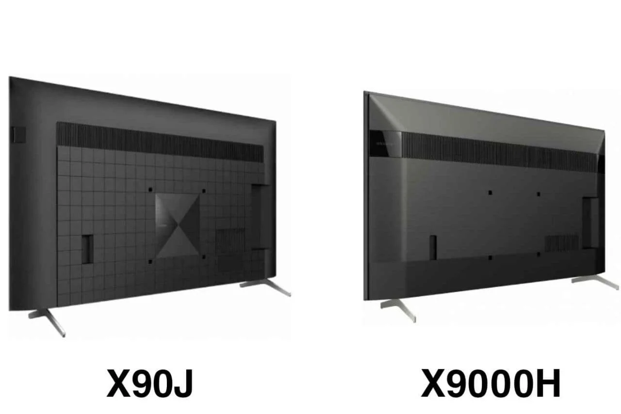 در رابطه با قسمت پشتی این تلویزیون ها باید بگوییم که چندان با هم شباهت ندارند. سطح قسمت پشتی تلویزیون سونی X90J به صورت مربع های کوچکی می باشد که در کنار هم قرار گرفته اند اما تلویزیون X9000H دارای سطح صاف می باشد که به صورت ساده ای طراحی شده است. از نظر کیفیت ساخت این تلویزیون ها باید بگوییم که تلویزیون X9000H به نسبت تلویزیون X90J امتیاز بیشتری را کسب کرده است و دارای بدنه محکم تری می باشد.