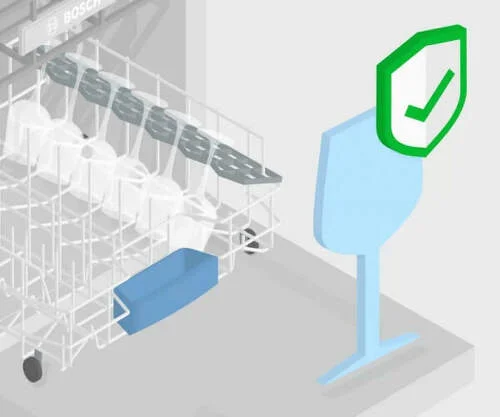 نوع آب شستشو تا حد زیادی بر شیشه و سرامیک های ریز تأثیر می گذارد ، جایی که شیشه یا سایر خوردگی ها ممکن است رخ دهد. مزیت این ماشین ظرفشویی بوش این است که دارای فناوری محافظت از شیشه است . این فناوری حفاظتی به طور مداوم درجه سختی آب را تنظیم می کند و بنابراین تضمین می کند که ظروف همیشه با مراقبت مناسب شسته شوند.