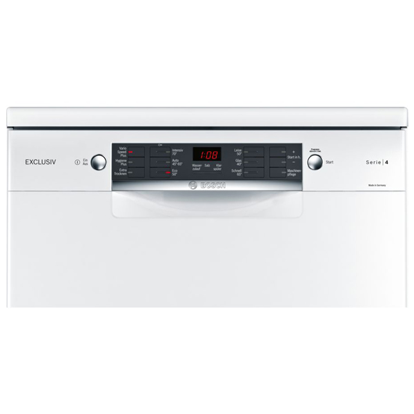 ماشین ظرفشویی بوش 14 نفره سری 4 مدل SMS46NW01B یکی از مدل های رده بالای برند ماشین ظرفشویی بوش است. این محصول متعلق به بخش 4 سری ، طراحی مستقل ، ظرفیت تا 14 مجموعه معادل 3 دستگاه شستشو می باشد. این دستگاه دارای رنگ های سفید روشن است که با سیستم صفحه نمایش ترکیب شده است تا فضایی لوکس ایجاد کند و فضای آشپزخانه خانوادگی شما را برجسته کند. در عین حال، ویژگی های مدرن نیز بر روی محصول ادغام شده است. به شما کمک می کند شگفت انگیزترین و رضایت بخش ترین تجربه را داشته باشید. ماشین ظرفشویی هوشمند بوش SMS46NW01B از جنس استنلس استیل تا 14 ست ظروف غذاخوری را در یک چرخه شستشو می شوید. در داخل سبدهای فلکس و یک کشوی کارد و چنگال VarioDrawer وجود دارد. حداکثر سطح نویز از 44 دسی بل تجاوز نمی کند و در برنامه بی صدا تنها به 41 دسی بل می رسد. 6 برنامه و 4 عملکرد ویژه وجود دارد: راه اندازی از راه دور، EfficientDry، نیم بار و SpeedPerfect+. AquaSenzor به همراه LoadSenzor میزان ظروف و درجه کثیفی را تشخیص می دهند و به طور خودکار برنامه شستشو را انتخاب می کنند. از دستیار دوز، EcoSilence Drive و سیستم فیلتر خود تمیز شونده لذت می برد. همچنین عملکرد AquaStop وجود دارد که از گرمای بیش از حد احتمالی جلوگیری می کند.