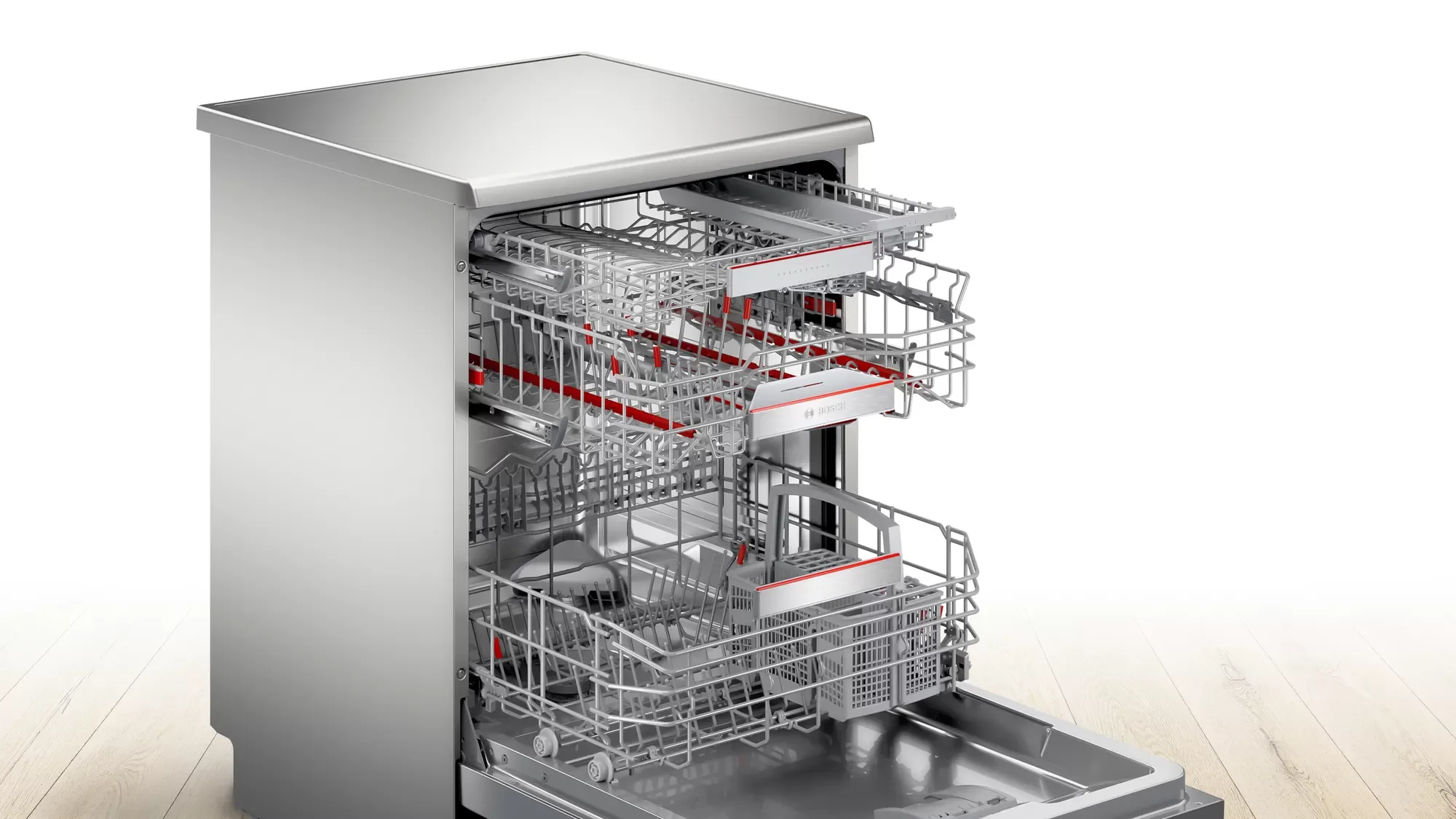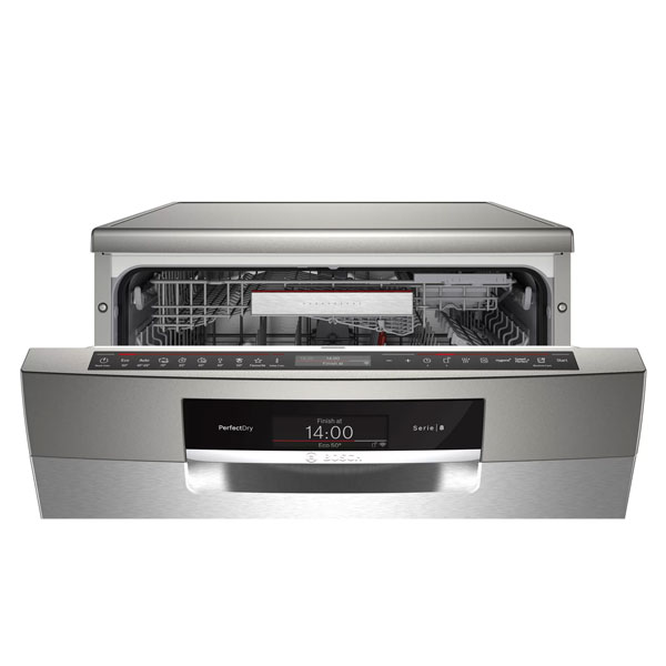ماشین ظرفشویی بوش 3 طبقه 13 نفر 2021 سری 8 مدل SMS8ZDI48Q یک یاز خوش فروش ترین و پر امکانات ترین ماشین ظرفشویی های موجود در بازار جهانی است ؛ هنگام استفاده از قرص ها در ماشین ظرفشویی ، به دلیل فعال شدن نابهنگام کمک آبکش، کیفیت خشک شدن به میزان قابل توجهی کاهش می یابد. DosageAssist ، ظرف مخصوصی که در دسته سبد بالایی قرار دارد ، به حل این مشکل کمک می کند. هنگامی که کووت باز می شود ، قرص وارد ظرف می شود که مواد شوینده ترکیبی به تدریج در آن حل می شود. در این صورت تمام معرف ها در زمان مناسب و به طور کامل کار خواهند کرد. کیفیت شستشو و خشک کردن در بالاترین سطح باقی می ماند. با تغییر سطح بار ماشین لباسشویی ، پارامترهای شستشو تغییر می کند. انتخاب برنامه اشتباه می تواند زمان ، آب و انرژی را هدر دهد. برنامه های خودکار بوش به طور خودکار دمای آب و زمان شستشو را برای شستشو با توجه به سطح کثیفی و بار روی دستگاه تنظیم می کند. این بدان معنی است که با برنامه های خودکار شما فقط به اندازه آب مورد نیاز برای یک نتیجه عالی استفاده می کنید. شستشوی مناسب برای هر بار با لمس یک دکمه. فناوری جدید ثبت شده CrystalDry ™ در ماشین های ظرفشویی منتخب بوش ، رطوبت را تا دمای 176 درجه فارنهایت برای خشک کن 60 درصد تبدیل می کند بنابراین می توانید بلافاصله پس از آماده شدن ماشین ظرفشویی، ظروف پلاستیکی خود را در کمد نگهداری کنید. * بر اساس میانگین تجمعی عملکرد خشک کردن ماشین های ظرفشویی بوش با CrystalDry™ تحت بارهای خانگی ترکیبی از جمله پلاستیک ، شیشه ، فولاد و چینی ، در مقایسه با ماشین ظرفشویی بوش با PureDry™. عملکرد خشک کردن ممکن است بسته به نوع غذا متفاوت باشد.