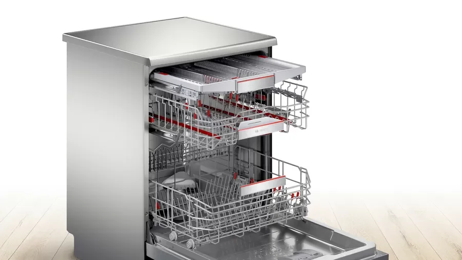 ماشین ظرفشویی بوش 14 نفره 3 سبد 2021 مدل SMS8YCI01E ازعالی ترین و به روز ترین ماشین ظرفشویی های ساخته شده توسط برند بوش است که در سال 2021 با تمامی امکانات فوق العاده خود و کارایی هایی که دارد روانه بازار گردیده است برند خوش نام بوش این ماشین ظرفشویی را در رنگ نقره ای طراحی کرده است و می تواند دیزاین آشپزخانه شما را رونق ببخشد ، رنگ ماشین ظرفشویی بوش 14 نفره 3 سبد 2021 مدل SMS8YCI01E به گونه ایی است که در همان دید اول می تواند نگاه بسیاری از کاربران را به سوی خود بکشاند بعد از شام خانوادگی با کمک این ماشین ظرفشویی بوش سریع تمیز شوید. از آنجا که می تواند به طور همزمان 14 مکان را در خود نگه دارد ، برای خانواده های متوسط مناسب است. اگر شبی طولانی داشتید و تخت خواب شما را در اسرع وقت صدا می کرد ، عملکرد SpeedPerfect+ تنظیمات را برای نصف کردن کل زمان شستشو بدون آسیب رساندن به نتایج تنظیم می کند. حتی می توانید این مدل را با استفاده از برنامه Home Connect به یک تلفن هوشمند سازگار مرتبط کنید - این به شما امکان می دهد بار خود را از هر کجا که در خانه (یا خارج) خانه هستید کنترل و نظارت کنید. و به لطف خشک کردن م Zeثر Zeolith® ، که از مواد معدنی طبیعی برای جذب رطوبت استفاده می کند ، تا زمانی که لباس خواب خود را بر تن کرده اید ، تمام قابلمه ها و ماهیتابه های شما بی عیب و نقص خواهند بود. این ماشین ظرفشویی مستقل است ، کنترل ها در بالای آن قرار دارند و مخفی شده اند. پایان شیک آن باعث می شود که واقعا گران و باکلاس به نظر برسد. صفحه نمایش TFT چند رنگ پاسخگو است و در قسمت جلویی بالا قرار دارد ، نشان می دهد که چه چرخه ها و گزینه هایی انتخاب شده اند ، پیشرفت ماشین ظرفشویی ، زمان باقی مانده و موارد دیگر. این ماشین ظرفشویی مستقل دارای 14 تنظیمات مکانی است که برای خانوارهای متوسط با حداکثر 4-5 نفر ایده آل است.