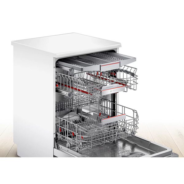 ظرفشویی بوش مدل SMS6ECW57E دارای سبدهای مکس فلکس که برای بارگیری صحیح ماشین ظرفشویی می تواند یک چالش باشد. در مورد سبدهای Max Flex اینطور نیست. با یک سبد پایینی پایدار و ردیف های تاشو از خوشه ها ، که امکان قرار دادن وسایل بزرگ ظروف را نیز فراهم می کند ، زندگی روزمره شما را آسان تر می کند. علاوه بر این ، نگهدارنده های شیشه ای تازه طراحی شده و نوارهای ضد لغزش ساخته شده از سیلیکون در سبد بالایی اطمینان حاصل می کنند که عینک شما به طور ایمن ذخیره شده است. یک کشو کارد و چنگال یا سبد سوم برای بارگیری بیشتر گزینه ها در دسترس است. سبدهای Max Flex انعطاف پذیری کامل و بارگذاری ثابت ماشین ظرفشویی شما را تضمین می کند. کشوی Vario با برش های اضافی فضا را برای ظروف کارد و چنگال بزرگتر یا وسایل کوچکتر ظروف مانند فنجان اسپرسو ارائه می دهد. این امر هنگام بارگیری ماشین ظرفشویی به شما انعطاف پذیری می دهد و فضای بیشتری در کابینت شستشو به شما می دهد. سبد بالایی به لطف رکمتیک سه طرفه با یک دسته در مجموع 5 سانتی متر قابل تنظیم ارتفاع است. و حتی به طور کامل بارگیری شده است. چه بشقاب های پیتزا و چه لیوان های ساقه بلند فضای بیشتری برای شستن وسایل بلند در بالا یا پایین ایجاد می شود.