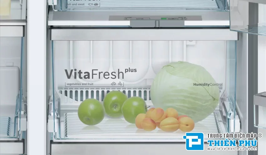 سیستم VitaFresh در یخچال فریزر ساید بای ساید بوش 30 فوت مدل KAG93AI304 به دلیل توانایی آن در کنترل شرایط و دما ، محیط ایده آلی را برای نگهداری تمام مواد غذایی تازه شما فراهم می کند. ماهی و گوشت در دمای حدودا 0 درجه سانتیگراد مدت بیشتری تازه می مانند. میوه ها و سبزیجات در یک محیط بهینه نگهداری می شوند. اکنون مقدار زیادی غذای تازه برای لذت بردن و کاهش ضایعات غذا خواهید داشت. عملکرد انجماد سریع دمای فریزر را پایین می آورد ، به طوری که تمام اقلام منجمد تازه خریداری شده شما به سرعت به دمای صحیح می رسند بدون اینکه تأثیری بر سایر مواد غذایی که قبلاً ذخیره شده اند داشته باشد.