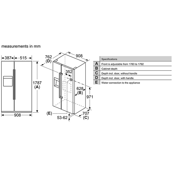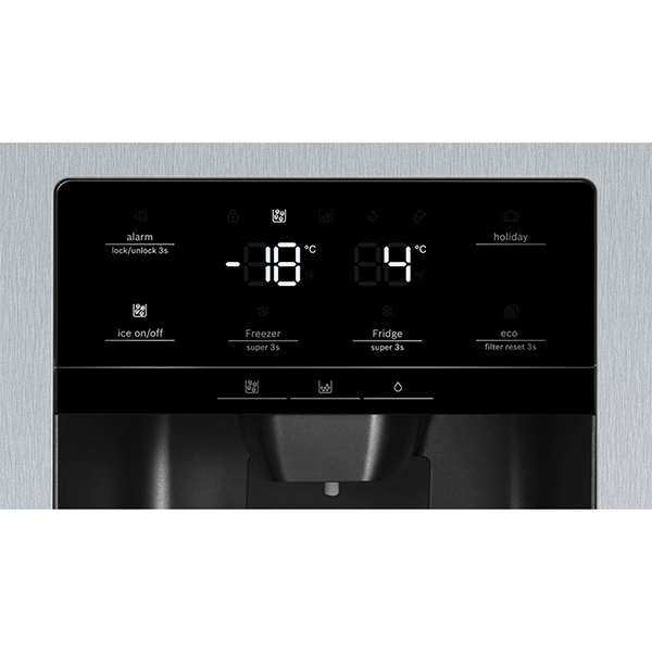 یخچال فریزر ساید بای ساید بوش 30 فوت مدل KAG93AI304 بوش دارای آب سردکن داخلی است تا کاربران بتوانند در هر زمان بدون نیاز به باز کردن درب ، آب سرد دریافت کنند تا از هدر رفتن هوای سرد جلوگیری شود.