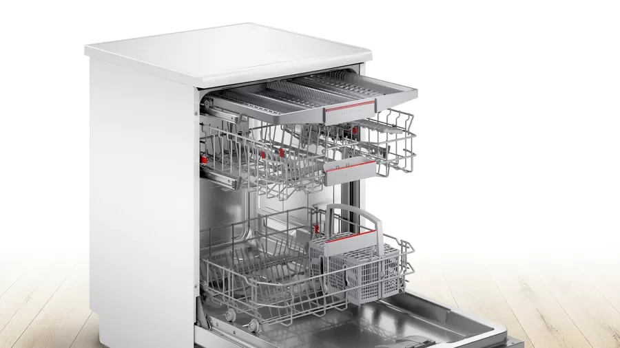 هنگام استفاده از قرص ها در ماشین ظرفشویی بوش سری 6 سه طبقه مدل SMS6hMW27Q ، ممکن است به دلیل فعال شدن نابهنگام کمک شستشو، کیفیت خشک کردن به میزان قابل توجهی کاهش یابد. DosageAssist، ظرف مخصوصی که در دسته جعبه بالایی قرار دارد ، به حل این مشکل کمک می کند. هنگام باز کردن کووت ، قرص در ظرفی می افتد که در آن انحلال مرحله ای مواد شوینده ترکیبی انجام می شود. تمام معرف ها در این حالت در زمان مناسب و به طور کامل کار خواهند کرد. کیفیت شستشو و خشک کردن در بالاترین سطح باقی می ماند. سیستم آبپاش گسترده DuoPower ™ در سبد بالایی گردش آب را برای نتایج عالی شستشو بهینه می کند . به لطف آنها، آب به گوشه و کنار اتاق می رسد و هیچ ظرفی را حذف نمی کند. دو بازوی اسپری فوقانی در ترکیب با بازوی پایینی شستشوی کاملاً براق را تضمین می کند و گردش آب بهبود یافته از شیشه و چینی ظریف محافظت می کند . Dosing Assistant برای بهینه سازی عملکرد قرص های ظرفشویی استفاده می شود. قرص مستقیماً در یک ظرف مخصوص در سبد بالایی ریخته می شود، جایی که به تدریج و به صورت کنترل شده حل می شود. هنگامی که مواد شوینده به درستی با آب مخلوط شود ، با نیروی بیشتری روی ظروف اثر می گذارد و نتیجه شستشوی عالی را برای هر بار تضمین می کند .