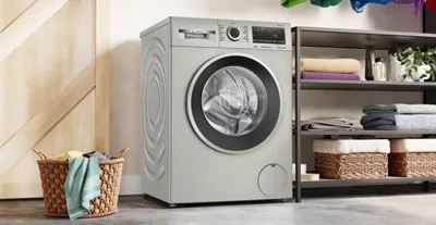 این ماشین لباسشویی بوش سری 4 با ظرفیت 9 کیلو بدنه ای با کیفیت دارد. با طراحی عالی که دارا بوده بی شک و با اطمینان میتوانیم آن را یکی از شیک ترین و مورد پسندترین لباسشویی هایی موجود در بازار به شمار بیاوریم. برای ساخت این دستگاه از استیل ضد زنگ Inox استفاده شده است. از این رو بدنه ای مقاوم در برابر ضربه و رطوبت دارد. بدنه آن دارای رنگ نقره ای یا همان سیلور است و به خوبی با هر نوع دکوراسیونی هماهنگ خواهد شد. درب ماشین لباسشویی بوش در جلوی بدنه جای گرفته است و در واقع از دسته ماشین های لباسشویی درب از جلو میباشد. دهانه بزرگ درب که قطر 32 سانتی متری دارد سبب شده تا بارگیری و تخلیه لباس ها از دیگ به راحتی و بدون مشکل انجام شود. همچنین زاویه باز شدن 165 درجه ای درب از دیگر خصوصیات عالی آن است. از شیشه حرارت دیده شده که شفاف است و در برابر ضربه و دمای بالا مقاومت دارد برای درب دستگاه استفاده شده و میتوان به خوبی از بیرون داخل دیگ را مشاهده کرد و در کل چرخه شستشو فرایند شستشو را به راحتی دید. بدنه ماشین لباسشویی بوش طراحی ویژه ای دارد که به طراحی AntiVibration شناخته میشود. در واقع نوعی علایق صدا و ضد لرزش بوده و شامل طرحی با برجستگی های حلقوی بر روی دیواره کناری بدنه دستگاه است. ابعاد این لباسشویی 9 کیلو بوش بر اساس استاندارد ساخته شده و دارای ابعاد شامل اندازه های ارتفاع 84.8 سانتی متر، عرض 59.8 سانتی متر و عمق 59 سانتی متر میباشد. از این رو به راحتی در داخل کابینت و جای مخصوص برای لباسشویی جای میگیرد. از نظر وزن نیز وزنی متعادل داشته و 71 کیلوگرم وزن دارد. این وزن به دلیل داشتن بدنه مقاوم و موتور سنگین آن است. در بالای بدنه همانند دیگر لباسشویی ها شاهد وجود نمایشگر، کلید چرخشی برنامه ها و محفظه مواد شوینده هستیم. دارای نمایشگر لمسی با طراحی عالی بوده و از نوع LED است. نور خوبی داشته و با فونت و اندازه مناسب اطلاعات لازم را در زمان کار دستگاه به نمایش در می آورد. کلید چرخشی آن که نام برنامه های اصلی شستشو به دورش درج شده است نیز اگر چه جزئی کوچک از این ماشین لباسشویی است اما با طرح عالی که دارد در زیباتر شدن کلی دستگاه نقش خوبی ایفا میکند.