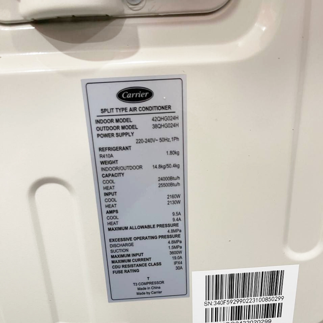 ظرفیت این کولرگازی همانطور که مشخص می باشد 24000 می باشد. در واقع ظرفیت کولرگازی برای خنک سازی فضا 24000 و ظرفیت کولر گازی در هنگام گرم کردن 25500 می باشد. یعنی ظرفیت کولرگازی در هنگام گرمایش بیشتر می باشد. این کولرگازی 24 هزار کریربرای متراژ60 تا 90 مترمربع می تواند بسیار مناسب باشد. قدرت پرتاب باد این کولر گازی بالای 12 متر می باشد پس در واقع مکان های نسبتا بزرگ همچون مطب ها و سالن های را به راحتی خنک یا گرم می کند. یکی دیگر از ویژگی های مثبت این کولرگازی وجود گاز مبرد R410A می باشد. در واقع این گاز R410A که در این کولر گازی کریر 24000 استفاده شده است از بی ضرر ترین گاز ها برای محیط زیست می باشد. این گاز R410A سبب می شود تا تغییر دما خیلی سریع اعمال شود و در مدت زمان خیلی کم دمای اتاق تغییر کند. این کولر گازی مجهز به فیلتر ضد باکتری می باشد. این فیلتر تمامی باکتری ها و الاینده های مضر هوا را حذف خواهد کرد و همچنین بوی نامطبوع هوا را نیز از بین خواهد برد.