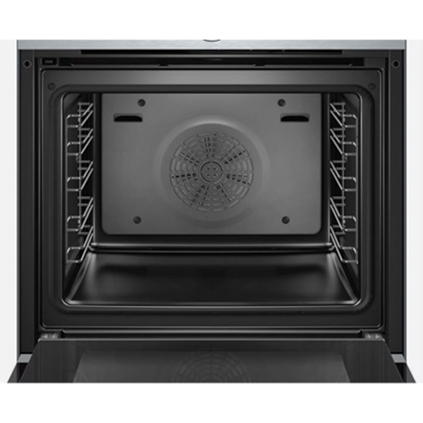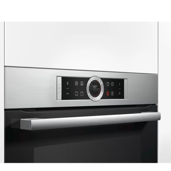 فر توکار برقی سری 8 بوش 71 لیتر مدل HBG634BS1 دارای حلقه کنترل بصری ما آشپزی را راحت تر از همیشه می کند. با چرخش کوچک حلقه وسط، می توانید هر یک از تنظیمات فر خود را تنها با یک انگشت تنظیم کنید. شما توسط صفحه نمایش TFT با متن واضح و دکمه های مستقیم قابل انتخاب پشتیبانی می شوید. بنابراین شما همیشه یک نمای کلی و کنترل آسان بر عملکرد اجاق خود دارید. اجاق گاز خود را به یک وسیله تمیز کننده تبدیل کنید. که با استفاده از فر تو کار HBG634BS1 امکان پذیر است. فر توکار برقی سری 8 بوش 71 لیتر مدل HBG634BS1 دارای فناوری های فوق العاده ای هستند و با بهترین کیفیت عملکرد را به شما ارائه می دهد. با فر توکار برقی سری 8 بوش 71 لیتر مدل HBG634BS1 که شما یک اجاق توکار چند منظوره دریافت می کنید. دستگاه به تنظیمات مختلفی مانند بخار مجهز شده است. شما به راحتی می توانید بخار را از طریق دکمه PlusSteam به فرآیند پخت اضافه کنید. این بخار یک نتیجه ترد اضافی را تضمین می کند. موقعیت بعدی که ما برجسته می کنیم، سیستم HotAir است که تضمین می کند هوای گرم به طور یکنواخت در سراسر حفره فر گردش می کند. فر سریعتر گرم می شود و دمای پخت 20 درصد کاهش می یابد. همچنین می توانید با عملکرد تمیز کردن پیرولیتیک در زمان خود صرفه جویی کنید. این عملکرد تمیز کردن کثیفی، چربی و باقی مانده مواد غذایی را به خاکستر تبدیل می کند که می توانید به راحتی پاک کنید.