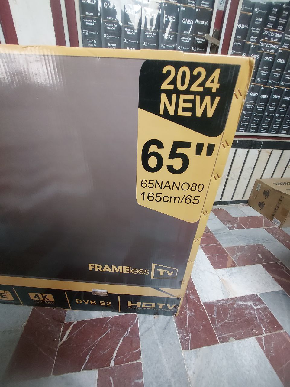 جنس بدنه ی محصول و کل اجزا هم از پلاستیک نوع فشرده تولید کرده اند. پس در مقابل ضربه، برخورد و آسیب های احتمالی می تواند استحکام خود را نشان دهد. در سمت چپ و راست بدنه هم پایه هایی باند به شکل V قرار داده اند. این پایه ها می توانند وزن کل بدنه را بسیار راحت حمل کنند. همچنین در چشم انداز و ظاهر هم زیبایی خاصی را ایجاد خواهند کرد. در پنل پشتی محصول پورت و درگاه های ارتباطی همراه با کابل های اتصال دهنده وجود دارد. اینگونه ظاهر دستگاه همیشه منظم بوده و حتی دسترسی سریع را ایجاد می کند. صفحه نمایش نانوسل محبوب است و اکثر کاربران از آن استفاده می کنند. اندازه ی صفحه 65 اینچ است که صحنه و تصویرها را در ابعاد بزرگ نمایش خواهد داد.