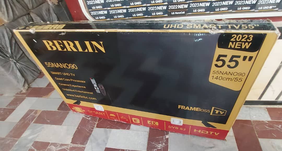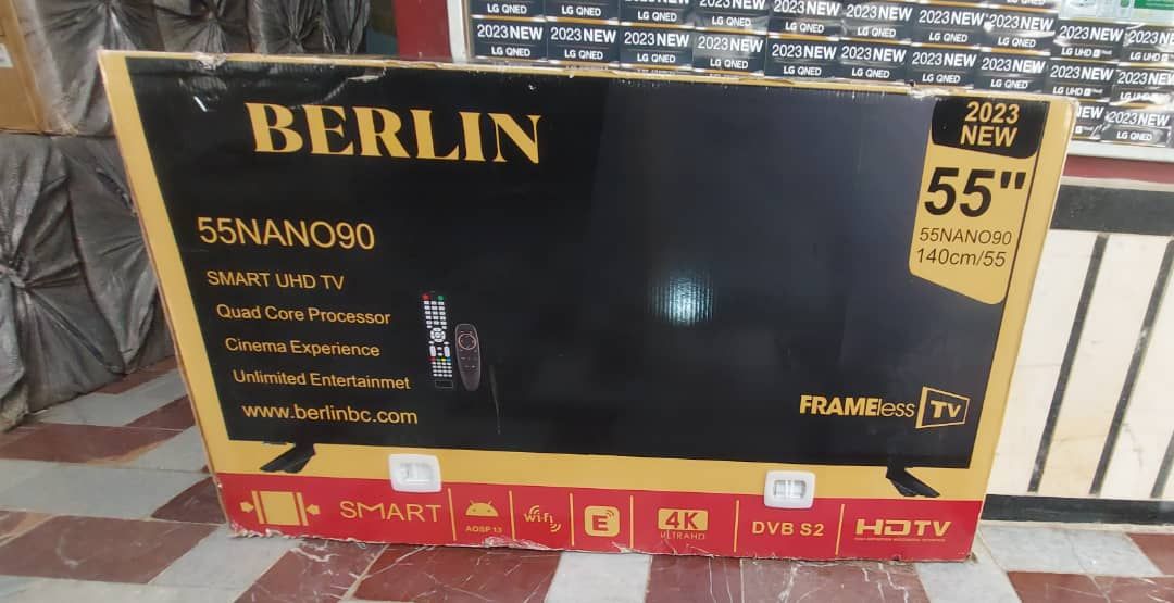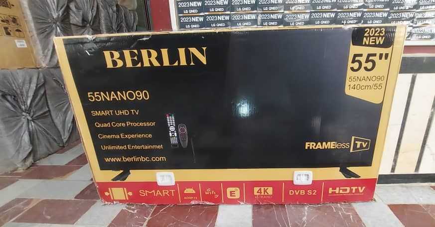 طراحی تلویزیون نانوسل برلین سری 9 در سایز 55 اینچ مناسب برای خانههایی با متراژ متوسط به بالا میباشد. این سایز یکی از خوشفروش ترین سایزها در بازار ایران میباشد. تلویزیون مذکور دارای لبه ای نازک و بدنه باریک است و با نصب روی دیوار با آن هماهنگ میشود؛ مانند یک تابلوی نقاشی از دور خودنمایی میکند. همچنین دارای پایه های مشکی رنگ است که در دو طرف قرار گرفته و از استحکام بالایی برخوردار است.