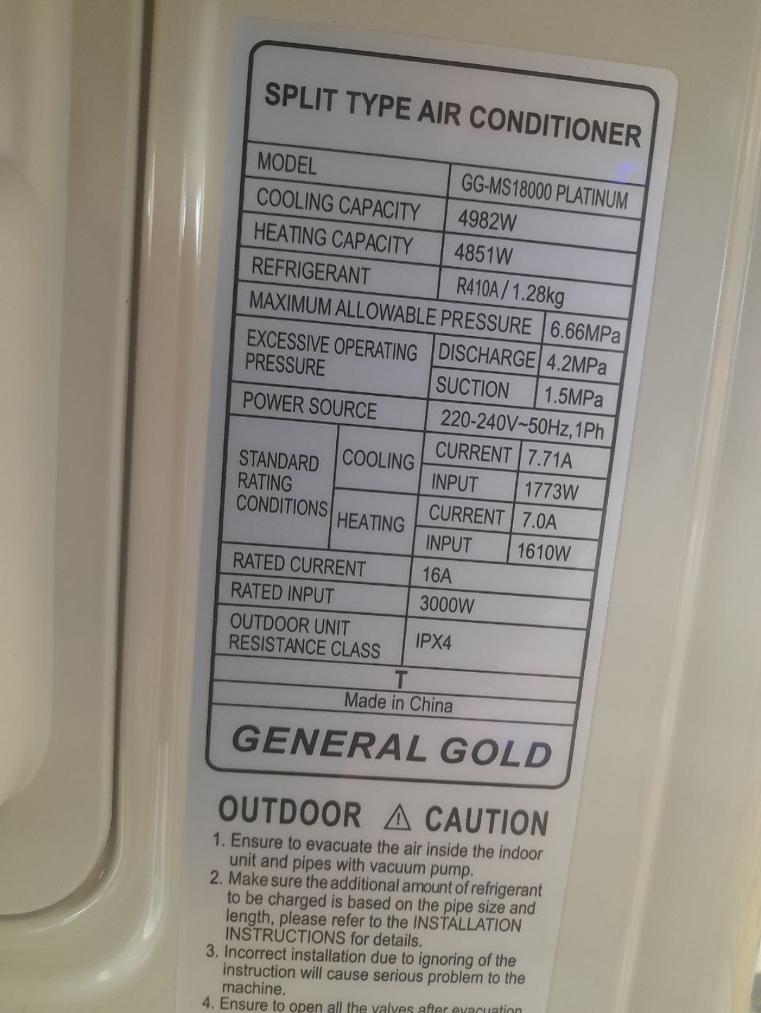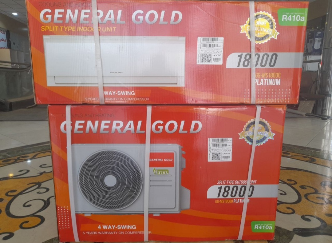 کولر گازی «جنرال گلد 18000 پلاتینیوم مدل GG-S18000 از اسپلیتهای دوکاره برخورداراست در سایز های 12000. 18000. 24000. 30000. تولید شده که از قابلیت سرمایش و گرمایش بهره میبرد. این دستگاه از ظرفیت 18هزار برخوردار است و میتواند برای اتاقهای نسبتا متوسط مناسب باشد. کولر گازی جنرال گلد 18000 مدل GG-S18000 یکی از برترین لوازم خانگی و مهم ترین عنصر برای آرامش اعضای خانواده ها و کارکنان در محیط های کاری است وقتی صحبت از تهویه مطبوع می شود، جنرال گود همیشه مورد علاقه بوده است. وقتی نسیم دلپذیر بهار به دمای بالای تابستان تبدیل می شود، داشتن یک سیستم خنک کننده در خانه می تواند گرما و رطوبت را تحمل کند. در حالی که افراد در آپارتمان ها یا خانه های کوچکتر می توانند با یک کولر گازی قابل حمل یا پنجره گرما را گرم کنند، ما در خانه های خانوادگی به اندازه یک سیستم تهویه مطبوع مرکزی مناسب تر نیازمند هستیم. کولر گازی جنرال گلد با ظرفیت18000 از پرفروش ترین برندهای کولر گازی در ایران قرار دارد و یکی از شناخته ترین نوع کولر ها می باشد. کولر گازی سرد و گرم جنرال گلد 18000 مدل GG-S18000 با سیستم اسپلیت سیکل معکوس، بهترین گزینه است. یک کولر گازی با چرخش معکوس می تواند گرم و همچنین خنک باشد. که از بهترین قابلیت هایی است که این کولر گازی برخوردار است. از این کولر گازی به منظور ایجاد تهویه مطبوع در محیط داخلی ساختمان از آن استفاده می شود. از سیستم اسپلیت سیکل معکوس می توان به عنوان تهویه هوا در تابستان و بخاری در زمستان برای راحتی خانه در تمام طول سال استفاده کرد. وقتی صحبت از سیستم تقسیم چرخه معکوس در مقابل گرمایش مجاری می شود، قرار دادن یک سیستم معکوس خنک کننده و گرم شدن آسان تر و ارزان تر از تهیه یک سیستم گرمایش مجاری است، زیرا یک سیستم داکت باید متناسب با خانه و کانال های منحصر به فرد شما باشد. باید در کف، دیوار یا سقف خود نصب کنید.