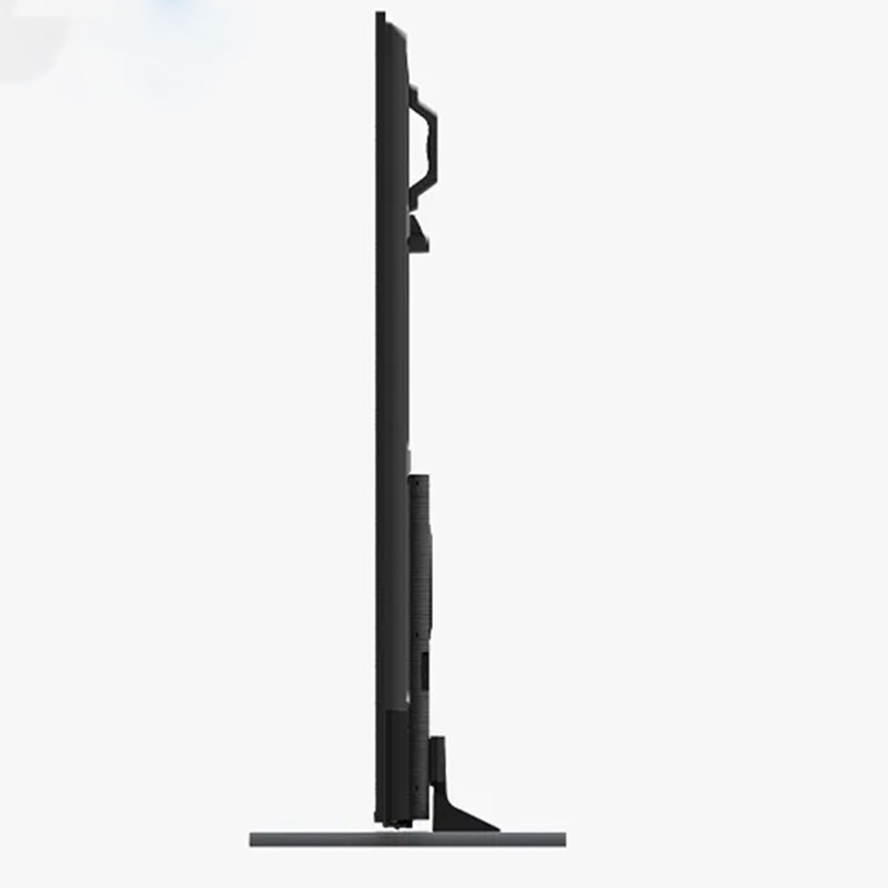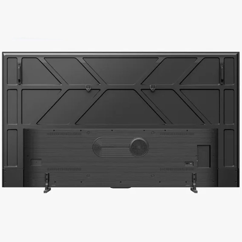 یکی از اولین چیزهایی که در نگاه اول به تلویزیون هایسنس 100Q7N توجه شما را جلب میکند، ابعاد عظیم و طراحی شیک آن است. این مدل با صفحه نمایش 100اینچی این امکان را فراهم کرده است تا هر فضایی را به یک سینمای خانگی تبدیل کند. طراحی مینیمال و قاب باریک، باعث شده تا تمرکز بیننده به طور کامل روی تصویر متمرکز شود. همچنین پایههای محکم و پایدار، اطمینان بالایی را از استحکام و ایمنی تلویزیون تضمین میکند. این مدل با رنگ مشکی قابل ست با دکوراسیون منزل شماست. حاشیه های نازک دور تا دور آن را پوشش داده است و با ضخامت کم مانند یک اثر هنری بر روی دیوار قرار میگیرد و از دور خودنمایی میکند. علاوه بر ضخامت کم، بخش مدیریت کابل ها را دارد تا فضای اطراف نمایشگر آراسته باشد. پنل پشتی یک قاب مستطیل شکل موجود بوده که بخش ورودی و پورتهای ارتباطی را در خود جای داده تا دسترسی به آنها سریع و آسان باشد. در نهایت دارای ریموت کنترل هوشمند است که از طریق میانبرهایی که دارد میتوانید نمایشگر را تحت کنترل خود در آورید.