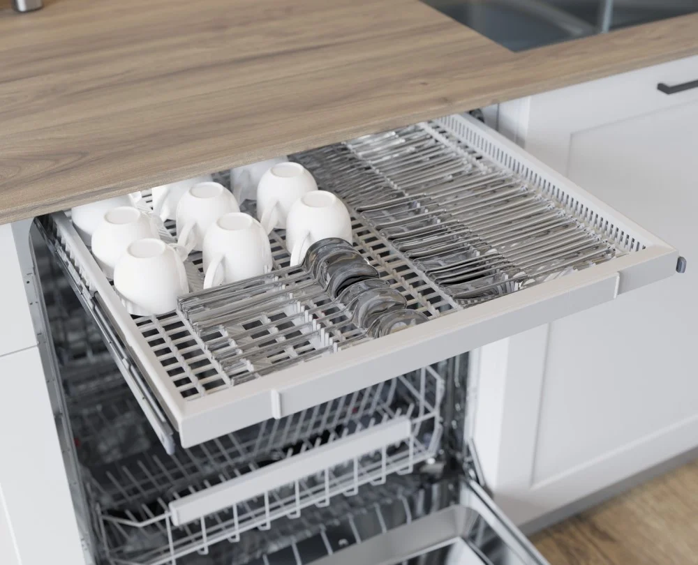 با استفاده از این سینی مخصوص کارد و چنگال ، از فضا کارآمدتر استفاده کنید و چیزها را سریعتر خشک کنید. طراحی ارگونومیک آن همه ظروف را به راحتی در خود جای می دهد و زمان خشک شدن را بهبود می بخشد. چیدمان را مجدداً پیکربندی کنید تا فضا را به حداکثر برسانید، زمان خشک شدن را به حداقل برسانید و همه چیز را در هر زمان مناسب کنید. بشقاب ها به راحتی و به طور منظم در سبد پایینی قرار می گیرند و اگر به فضای اضافی برای قابلمه ها و تابه های بزرگتر نیاز دارید، به سادگی قفسه بشقاب را تا کنید یا ارتفاع سبد بالایی را تنظیم کنید. ماشین ظرفشویی هایسنس 14 نفره سه طبقه مدل H14DSF با کنترل های یکپارچه از بازوی اسپری انحصاری OrbitClean® استفاده می کند که پوشش آب بهتری را برای تمیز کردن کامل هر بار برای شما فراهم می کند. گزینه Heated dry به خشک کردن ظروف شما در اولین بار با استفاده از المنت حرارتی کمک می کند. این ماشین ظرفشویی همچنین دارای فناوری DishSense™ است که به طور خودکار زمان چرخه را بر اساس میزان تمیز کردن ظروف شما تنظیم می کند. این Lowe's Exclusive شبیه مدل FFID2426TS است اما دارای روکش فولادی ضد زنگ EasyCare™ است که در برابر اثر انگشت مقاومت می کند و به راحتی تمیز می شود.