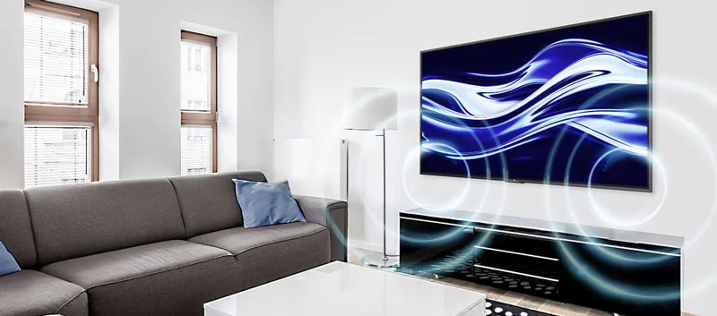 يکي از ويژگيهاي برجسته سيستم صوتي اين تلویزیون، پشتيباني از فناوري DTS Virtual:X است. اين فناوري صدا را بهصورت سهبعدي پردازش کرده و آن را در فضاي اطراف پخش ميکند تا حس حضور در محيط را براي کاربر شبيهسازي کند. DTS Virtual:X بدون نياز به بلندگوهاي اضافي، صدايي فراگير ايجاد ميکند و باعث ميشود که کاربران احساس کنند در وسط صحنههاي فيلم يا بازي قرار گرفتهاند. اين ويژگي بهويژه در هنگام تماشاي فيلمهاي اکشن، مسابقات ورزشي و اجراي موسيقي زنده تأثير زيادي دارد و تجربه صوتي را به سطحي کاملاً جديد ميرساند.