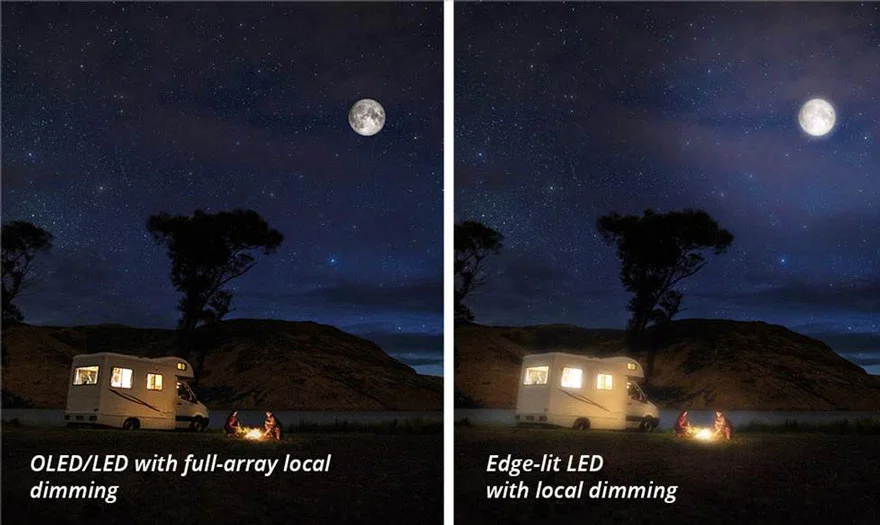 عملکرد اين فناوري به اين صورت است که صفحه نمايش به چندين ناحيه تقسيم ميشود و ميزان روشنايي هر ناحيه بهصورت مستقل تنظيم ميگردد. در نتيجه، قسمتهاي تاريک تصوير واقعگرايانهتر به نظر ميرسند و جزئيات بيشتري در صحنههاي کمنور قابل مشاهده خواهند بود.
