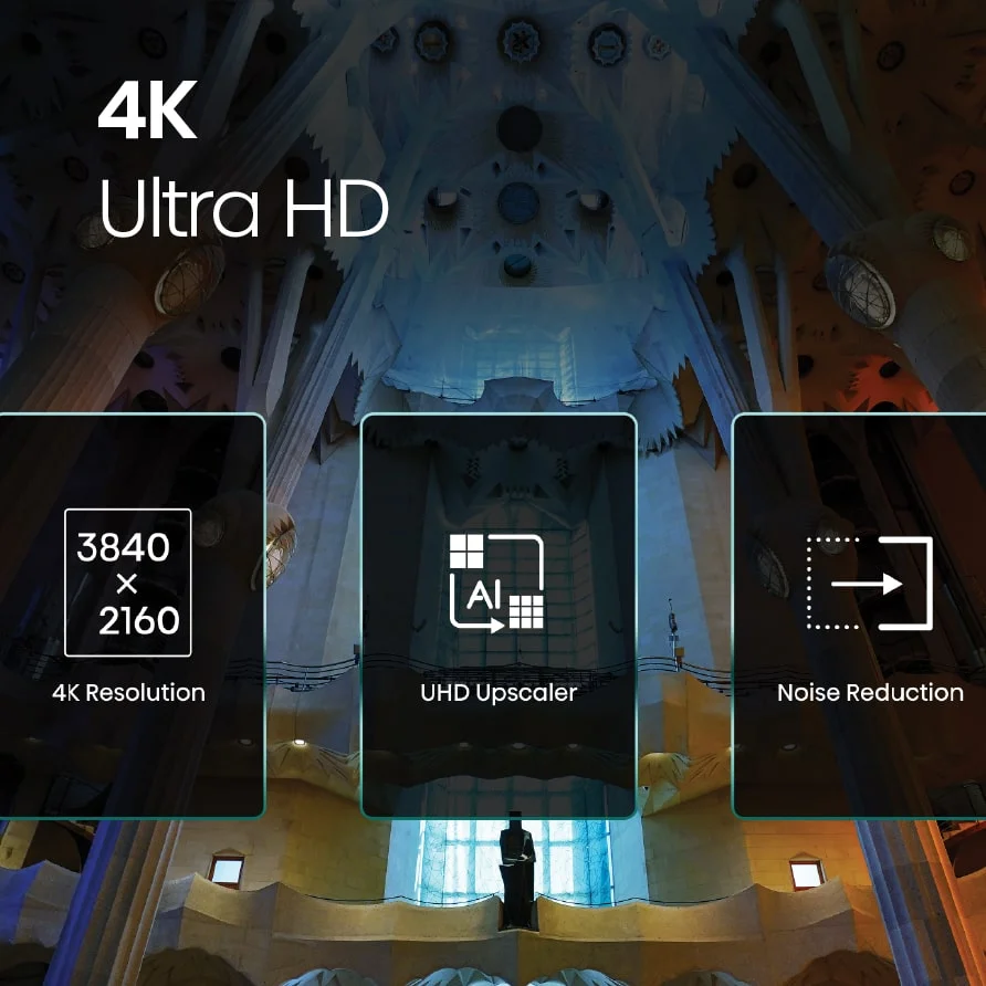 رزولوشن 4K UHD در این مدل یافت می شود و حتی چهار برابر بزرگتر و بهتر از Full HD Hisense 43A4G است. به عنوان مقایسه ، رزولوشن های فول اچ دی با رزولوشنهای 1080P ارائه می شوند که رزولوشن های 3840×2160 پیکسل را نشان می دهند که کارایی آن را بیشتر می کند. همچنین دارای 8.4 میلیون پیکسل است که به آن اضافه شده است و یک آرایه کامل نور پس زمینه LED که تصویر واضح تر و رنگارنگ تری ایجاد می کند. رزولوشن 4K قادر است چهار برابر حجم اطلاعات را ثبت کند و برخلاف فیلم های 1080p، می توان محتوا را از طریق آن برش داد ، بزرگ نمایی کرد و بدون از دست دادن کیفیت مجددا قاب شد. رزولوشن 4K UHD به عنوان نسخه ارتقایافته 1080p با رزولوشن 3840x2160P ، صحنه های همه جانبه و واقعی را در اختیار شما قرار می دهد. رزولوشن 4K قادر است چهار برابر حجم اطلاعات را ثبت کند و برخلاف فیلم های 1080p، میتوان محتوا را از طریق آن برش داد ، بزرگ نمایی کرد و بدون از دست دادن کیفیت مجددا قاب شد. این رزولوشن چهار برابر فول اچ دی و همچنین دارای 8.3 میلیون پیکسل است. نور پس زمینه LED آرایه کامل آن تصویر واضح تر و رنگارنگ تری ایجاد می کند.