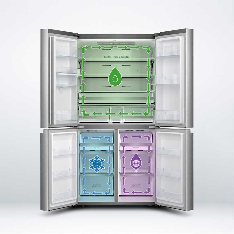 هوای سرد با همه ی مواد موجود برخورد داشته و آن ها را حفظ می کند. این فناوری توسط پشتیبان خود یعنی Computer temperature control وظیفه ی خود را انجام می دهد. زمانی که هر یک از بخش ها دچار افت دما شود فورا جبران خواهد شد. یکی از فناوری های موجود در این بخش دما را در سه سطح مختلف وارد یخچال می کند. این فناوری Triple Choice نام گذاری شده است. در نتیجه مواد بسته به بافت خود هوای مورد نیاز را در اختیار خواهند داشت.