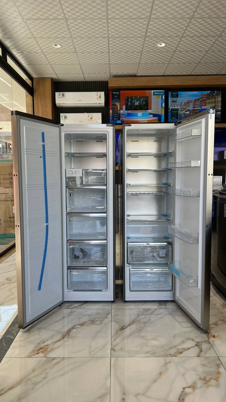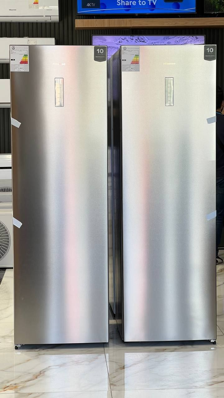 زیرا هایسنس ظرفیت و گنجایش کامل را از 840 لیتر تهیه کرده است. پس مواد در حجم بسیار بالا را بدون مشکل و به راحتی می توان درون آن جایگذاری کرد. رنگ بدنه ی این کالا از سیلور ساخته شده که فوق العاده به نظر می رسد. این رنگ با انواع دکورها تناسب داشته و جزو رنگ های محبوب است. جنس بدنه از استیل ضد خش بوده که در مقابل ضربه و برخوردها هم مقاومت دارد. بر روی درب هر یک از بخش ها پنل و صفحه نمایش طراحی کرده اند. یخچال دوقلو هایسنس جدا از هم تولید شده اند. اما می توان آن ها در محیط متناسب با سلیقه خود کنار هم و یا جدا نصب و راه اندازی نمود.