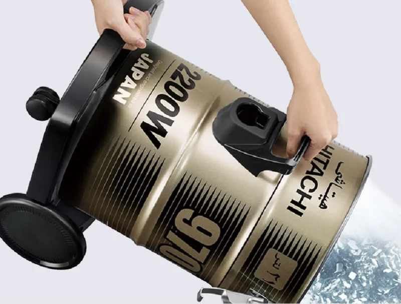 جاروبرقی سطلی هیتاچی 2200 وات 23 لیتر مدل CV_985DC دارای طراحی شیک و زیبایی است که با رنگ های مشکی و نود زیباتر شده است و نیز با دسته بسیار زیبا و فوق العاده راحت برای کار کردن بهینه شده تا هنگام کار کردن با آن اذیت نشوید. همچنین لوله خرطومی آن که به شما اجازه می دهد کارها را سریعتر انجام دهید و چرخ های آن که جابه جا کردن جاروبرقی را آسان تر می کند.