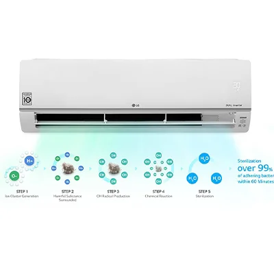 کولر گازی 12000 دوال اینورتر ال جی از قابلیت تصفیه ی هوا به وسیله ی +Plasmaster Ionizer برخوردار است. با داشتن این قابلیت دیگر اجازه به هیچ باکتری و یا ذره ی مضری برای ورود به هوای داخل خانه داده نمی شود. در واقع در این حالت ذرات باکتری و یا سایر عوامل آلوده کننده به وسیله ی یون های فعال احاطه و به صورت کامل خنثی می شوند تا هیچ ضرری برای شما نداشته باشند. بنابراین شما مطمئن خواهید بود که هوای خروجی از کولر شما کاملا تصفیه و تمیز است و با خیال راحت می تواند ان را تنفس کنید.