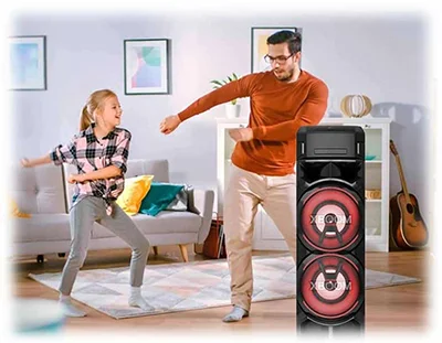 این فناوری قابلیت استفاده در مکان های بزرگ مانند دیسکو برای پخش و انتخال آهنگ مورد علاقه شما خواهان زیادی دارد ؛ پس کمپانی معروف ال جی سیستم صوتی ال جی 1800 وات ایکس بوم مدل XBOOM OK99 را به این قابلیت عالی مجهز کرده است. و منجر می شود تا کاربران در هر زمان که قصد دارند به شنیدن آهنگ های مورد علاقه خود بپردازند و از آن نهایت استفاده را ببرند. همچنین با ویژگی Pro DJ می توانید به یک DJ حرفه ای تبدیل شوید؛ در واقع حالت DJ همراه با موسیقی می تواند بهترین لحظات را برایتان به وجود بیاورد. و با استفاده از چرخش پد لمسی می توانید از از جلوه های گوناگون صوتی برخوردار شوید و در صورت نیاز و با توجه به موقعیت مکانی خود می توانید از این جلوه های مختلف بهره مند شوید.