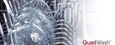 این سیستم یکی از عالی ترین سیستم های تعبیه شده در یک ماشین ظرفشویی است این ماشین ظرفشویی فوق العاده که توسط برند ال جی ساختخه شده است این ظرفشویی با داشتن یک اسپری قوی و چند منظوره خود تمامی چربی ها و لکه های موجود بر روی هر ظرفی را ازبین برده این سیستم فوق العاده QuadWash نام دارد و همان طور که از اسمش آشکار است مجهز به 4 اسپری می باشد و با فشار بسیار قدرتمند خود چرب ترین و کثیف ترین ظروف را در کوتاه ترین مدت از بین می برد این سیستم فوق العاده دارای دو بازو می باشد که آب را بر تمامی ظروف می پاشد و با حرکت رفت و برگشتی خود از هر طرف به این ظروف آب پاشیده و ظروف را می شوید پس در ادامه می توان گفت با استفاده از این سیستم فوق العاده در مصرف آب بسیار صرفه جویی شده و کمک زیادی به صرفه جویی در هدر دادن آب می کند. و تمامی ظروف موجود در قفسه ها را تمیز خواهد کرد تمیز کردن از هر زاویه به لطف بازوهای اسپری Multi-Motion و جت های فشار قوی ، QuadWash coverage حداکثر پوشش را برای تمیز کردن چیزها در اولین بار فراهم می کند.