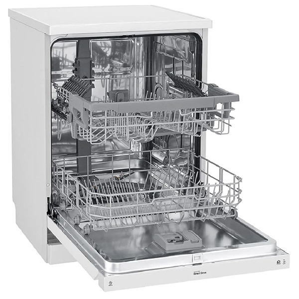 ماشین ظرفشویی 425 ال جی رنگ سفیدیکی از بهترین و عالی ترین ماشین ظرف شویی های ساخته شده توسط برند ال جی می باشد این محصول از دوام و استحکامت زیادی برخوردار است و با رنگ سفید DFB425FWو رنگ نقره DFB425FP که هر دورنگ جذاب می باشند وارد بازار شده است این رنگ به آسانی با دکوراسیون منزل شما ست می شود این ماشین ظرفشویی 14 نفره است و شما قادر خواهید بود حجم زیادی از ظروف را در داخل این ظرفشویی قرار دهید و شما می توانید این قفسه ها را بسته به اقلام بزرگی که می خواهید در آن قرار دهید ارتفاع این قفسه ها را تغییر دهید و به شستشو خود ادامه دهید. از مزیت عالی این دستگاه می توان به فناوری فووق العاده اسپری چهار بازو که با نام QuadWash شناخته شده است اشاره نمود پس می توان گفت که برند ال جی با تعبیه این فناوری منحصر به فرد این آرامش خاطر را برای کاربران خود به ارمغان آورده تا ظروفی تمیز و عاری از هر گونه لکه تحویل گیرند همچنین می توان به این نکته اشاره کرد که نوع موتوری که برای این ظرفشویی تعبیه شده است از نوع اینورتر دایرکت درایو می باشد که علاوه بر کارایی و امکانات خاص خود در همان شستشوی ظروف هیچ گونه صدایی را از خود تولید نخواهد کرد و دستگاه در کمال بی صدایی به کار خود ادامه می دهد. دو سیستم فوق العاده که برای این ظرفشویی قرار داده شده در ادامه بحث به توضیح بیشتر آنها خواهیم پرداخت. میزان وحجم آبی که توسط این ماشین ظرفشویی به مصرف می رسد برابر 9 لیتر است جنس این ظرفشویی از استیل ضد زنگ بوده و این آرامش خاطر را برای مصرف کنندگان خود به وجود آورده که سالیان سال از این دستگاه استفاده کنند.