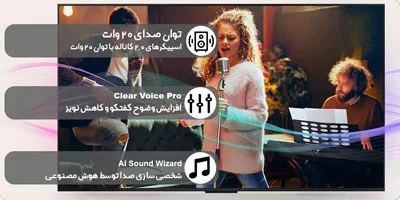 تلویزیون ال جی 65QNED86A Mini LED دارای سیستم صوتی 2.0 کاناله است و دو بلندگوی با توان صوتی 10 وات دارد. در نتیجه صدایی که در کل تلویزیون ال جی دارد برابر توان صوتی 20 وات است. با داشتن چنین توان صوتی برای استفاده روزمره و تماشای فیلم و سریال عالی خواهد بود. اما در صورتی که میخواهید صدایی پر قدرت تر و با بیس بیشتری را برای تماشای برنامه ها از این تلویزیون عالی ال جی دریافت کنید این امکان برایتان فراهم شده تا سیستم های صوتی و یا ساندبار را به تلویزیون خود متصل کنید. نمونه ای از فناوری های صوتی که در این تلویزیون به کار رفته اند شامل تکنولوژی های AI Sound و Dolby Atmos هستند. فناوری هوشمند AI Sound جهت بهینه سازی صدا بر اساس پردازشگر تلویزیون عمل میکند. با این ویژگی فوق العاده دیالوگ، باس و فراگیری سازی جداسازی میشوند. همچنین فناوری دالبی اتموس سبب شده تا صدایی سه بعدی و فراگیر ایجاد شود.