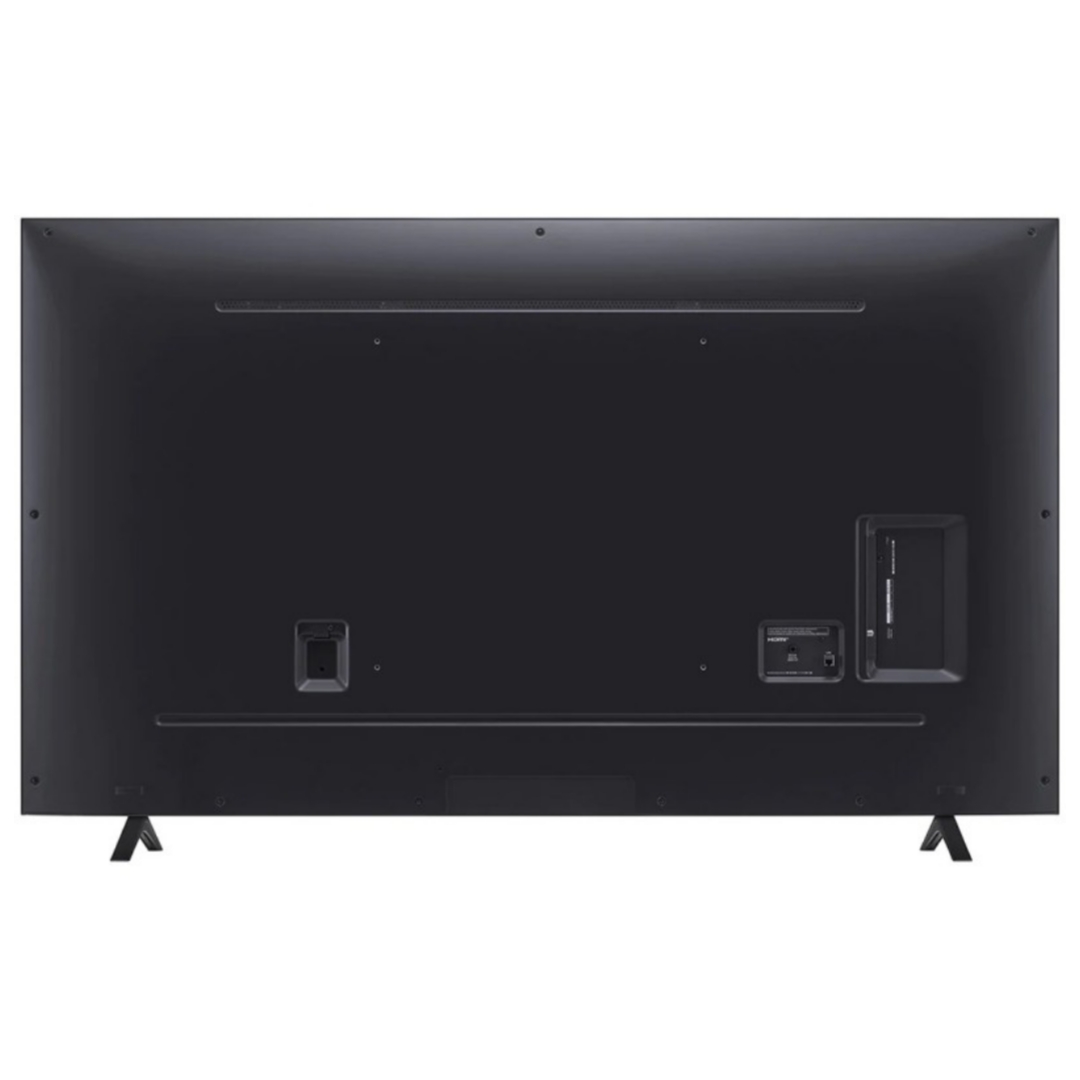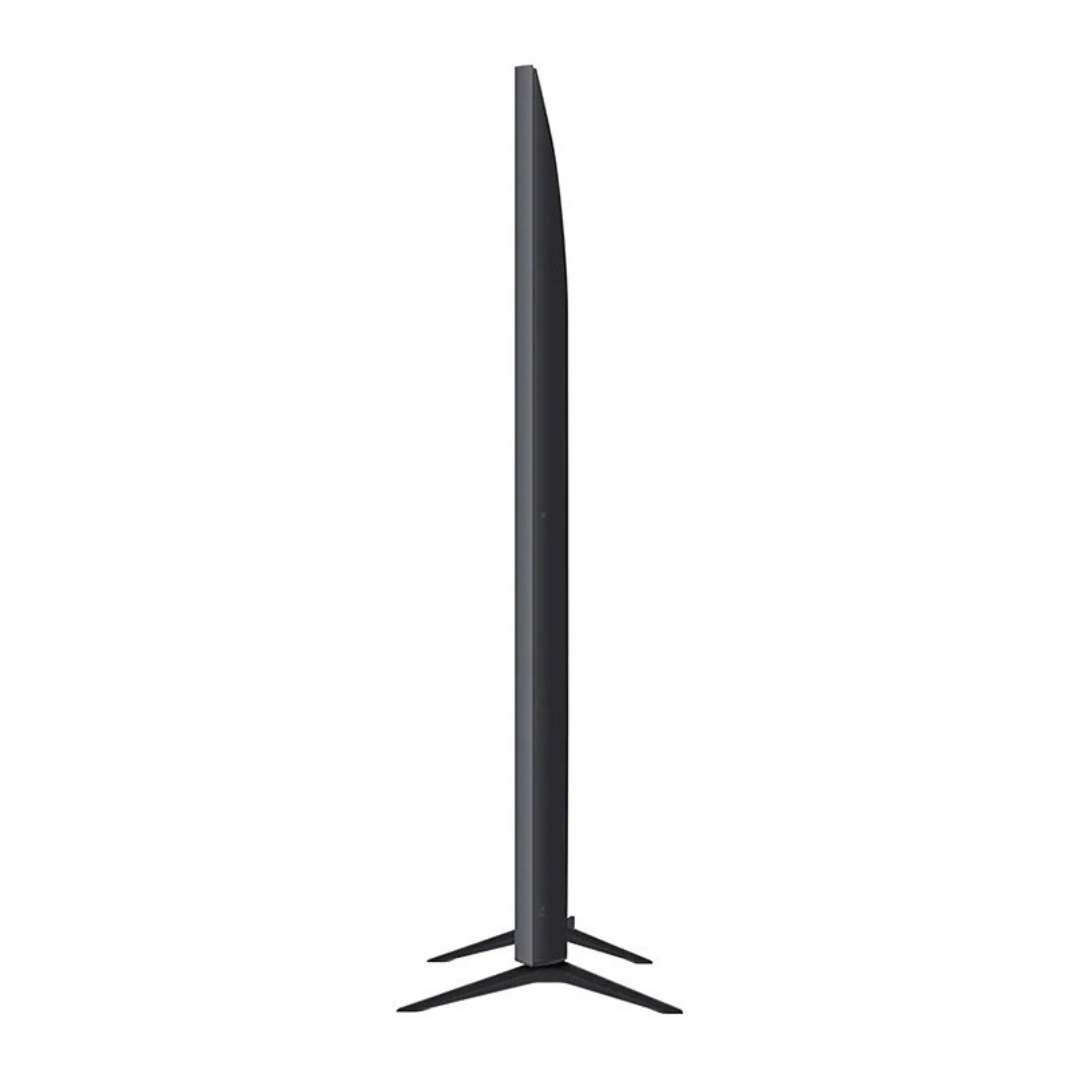 این تلویزیون 75 اینچ ال جی یک تلویزیون با طراحی ساده و زیبایی می باشد. این تلویزیون ال جی دارای سایز 75 اینچ می باشد که مناسب برای مکان هایی با ابعاد بزرگ همچون هتل ها، مطب ها و اتاق نشیمن می باشد. با نگاه کلی به این تلویزیون متوجه فریم باریک آن خواهید شد. فریم این تلویزیون 1 سانتی متر می باشد. به طور کلی هر چه فریم باریک تر باشد، جلوه ای زیباتر را ایجاد می کند و سبب می شود تا تلویزیون طراحی چشمگیر تری به خود بگیرد. این فریم باریک همچون قابی زیبا تلویزیون را در بر میگیرد و سبب ایجاد تمرکز بیشتر بر روی محتوای در حال پخش می باشد. تلویزیون UQ8050 دارای پایه های دو شاخه ای می باشد که در اطراف تلویزیون قرار می گیرد. این پایه ها بسیار محکم می باشند که هیچ گونه لرزشی ندارند و ثابت وزن تلویزیون را تحمل می کنند. این پایه های دو شاخه ای به دلیل عریض بودن نیازمند قرار گرفتن روی میز بزرگ می باشند. البته برای علاقمندان نصب تلویزیون بر روی دیوار باید گفت که می توانید به سادگی با حذف پایه های تلویزیون و به وسیله براکت مناسب، تلویزیون را بر روی دیوار نصب کنید. نصب تلویزیون به وسیله براکت ها بسیار ساده می باشد و جلوه ای مرتب و مدرن را در هر فضایی ایجاد خواهد کرد. قسمت پشتی این تلویزیون کاملا ساده و با رنگ مشکی ماتی طراحی شده است. در طرف راست این تلویزیون درگاه های ارتباطی تعبیه شده است که از طریق آن می توانید فلش و کابل ها را متصل کنید. بدنه این تلویزیون بسیار محکم است و در برابر هر ضربه ای استحکام زیادی دارد.