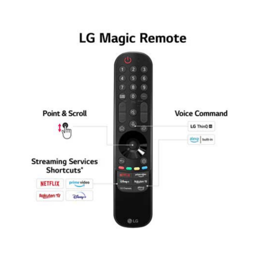 سیستم عامل تلویزیون های ال جی webOS می باشد. این سیستم عامل دارای رابط کاربری جذابی می باشد که قادر است بیشتر برنامه ها را اجرا کند و همچنین به کاربر قابلیت نصب برنامه های مدنظرش را خواهد داد. ورژن سیستم عامل تلویزیون UR9100 بردی سال 2023 می باشد که به محز ورود به آن با دنیایی از سرگرمی ها و برنامه ها مواجه خواهید شد. برنامه های جهانی همچون یوتیوب، نتفلیکس و apple tv را پشتیبانی می کند و می توانید فیلم و سریال های مورد علاقه خود را درون آنها بیابید. ریموت کنترل این تلویزیون از نوع هوشمند می باشد که دارای سایز استاندارد و طراحی مینیمالی می باشد. همچنین از دکمه اسکرول نیز پشتیبانی می کند که همچون ماوس عمل می کند. از طریق این ریموت کنترل هوشمند می توانید به جستجوی صوتی و اعمال دستورات صوتی از طریق Alexa و Google Assistant بپردازید. این سیستم عامل به شما امکان وب گردی، Multi View و ایجاد پروفایل جداگانه برای کودکان را خواهد داد و می توانید فیلم و انیمیشن های مناسب سنشان را به نمایش بگذارید.