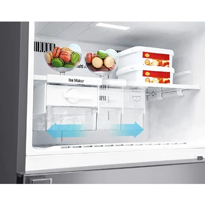 در این یخچال فریزر ال جی 752 بالا پایین 20 فوت رطوبت مطلوب برای طراوت ماندگارتر در کشوی هوشمند طراحی شده محیطی ایده آل برای سیب و کدو سبز فراهم می کند، بنابراین آنها برای مدت طولانی تری تازه تر می مانند. یک مهر و موم محکم از خروج رطوبت در زمانی که سطح رطوبت کم است جلوگیری می کند و یک دریچه زمانی که رطوبت بیش از حد بالا است، رطوبت اضافی را آزاد می کند. فضای ذخیره سازی خود را به راحتی به حداکثر برسانید و استفاده از قفسه Easy Slide بر روی لولاهای چرخان ساخته شده است، و به بیرون کشیده می شود تا بتوانید به طور موثری به مواد غذایی خود دسترسی داشته باشید و به راحتی آنچه را که در پشت ذخیره کرده اید مشاهده کنید.